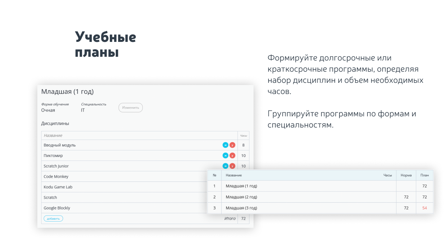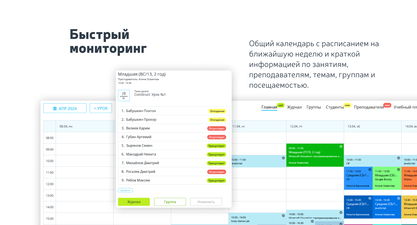 В приложении мы предусмотрели основные компоненты для построения контроля над образовательными процессами: