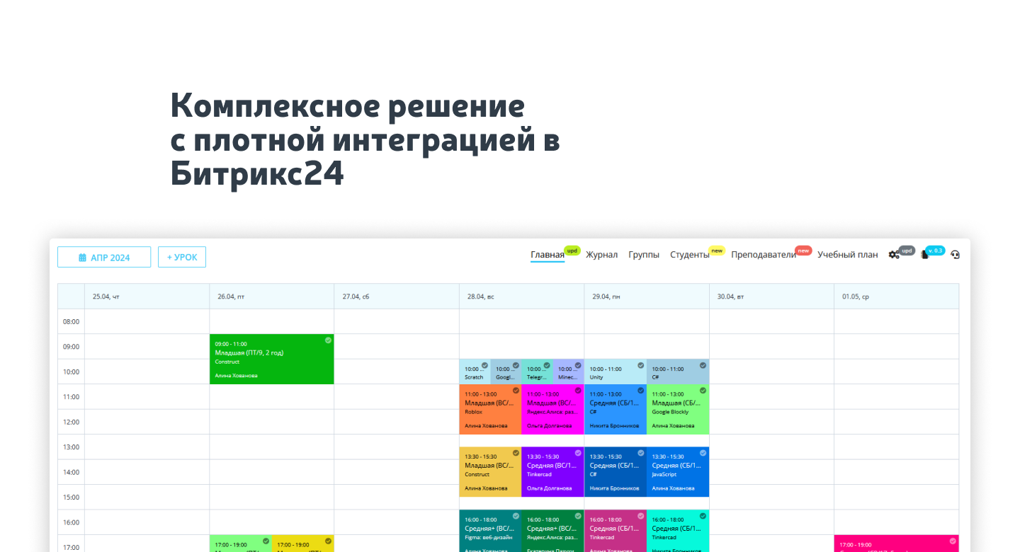 Готовое решение по управлению учебным процессом. Подойдет как для частного образовательного центра, так и для корпоративного отдела обучения.