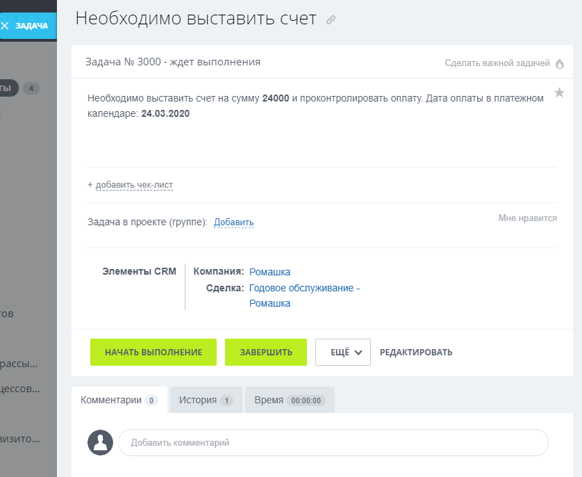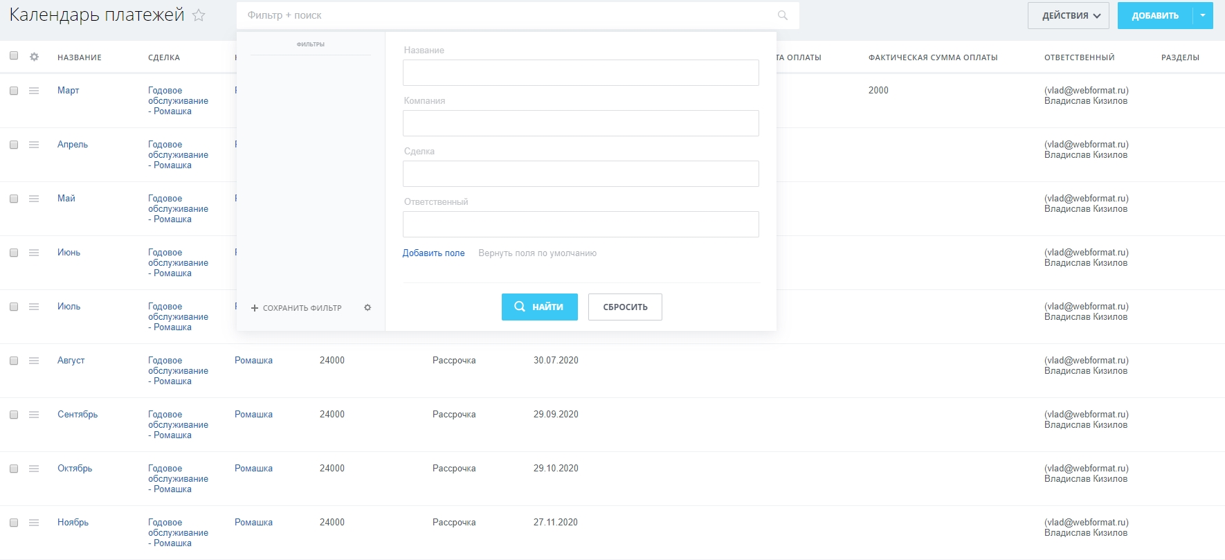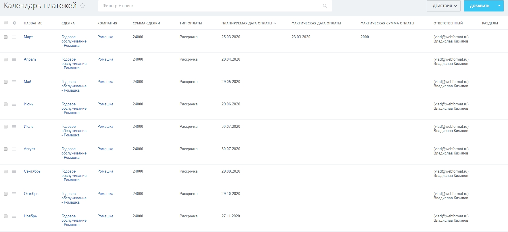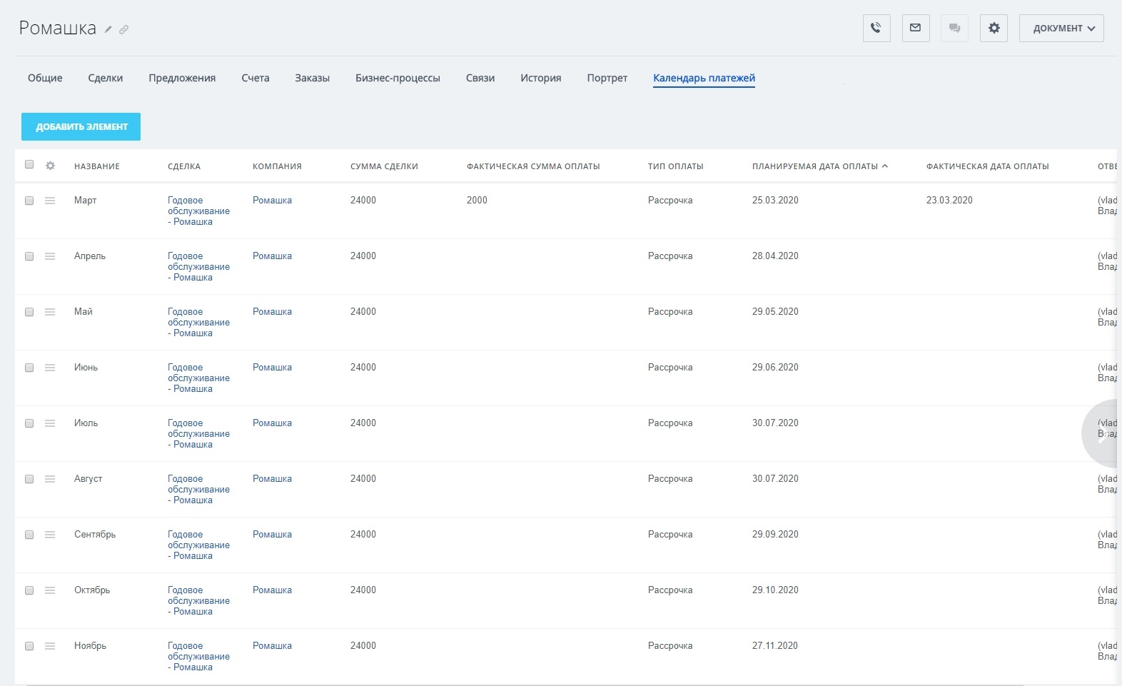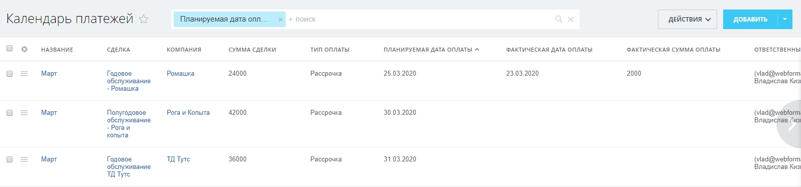 • Ответственный – сотрудник, который должен контролировать своевременные оплаты