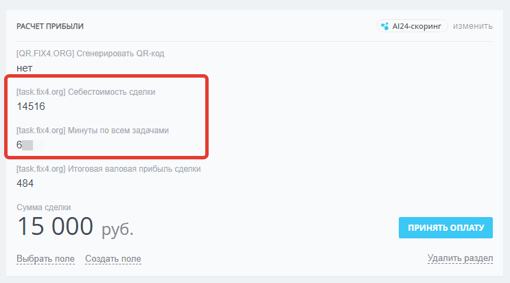 Данные о валовой прибыли в карточке сделки Битрикс24.CRM