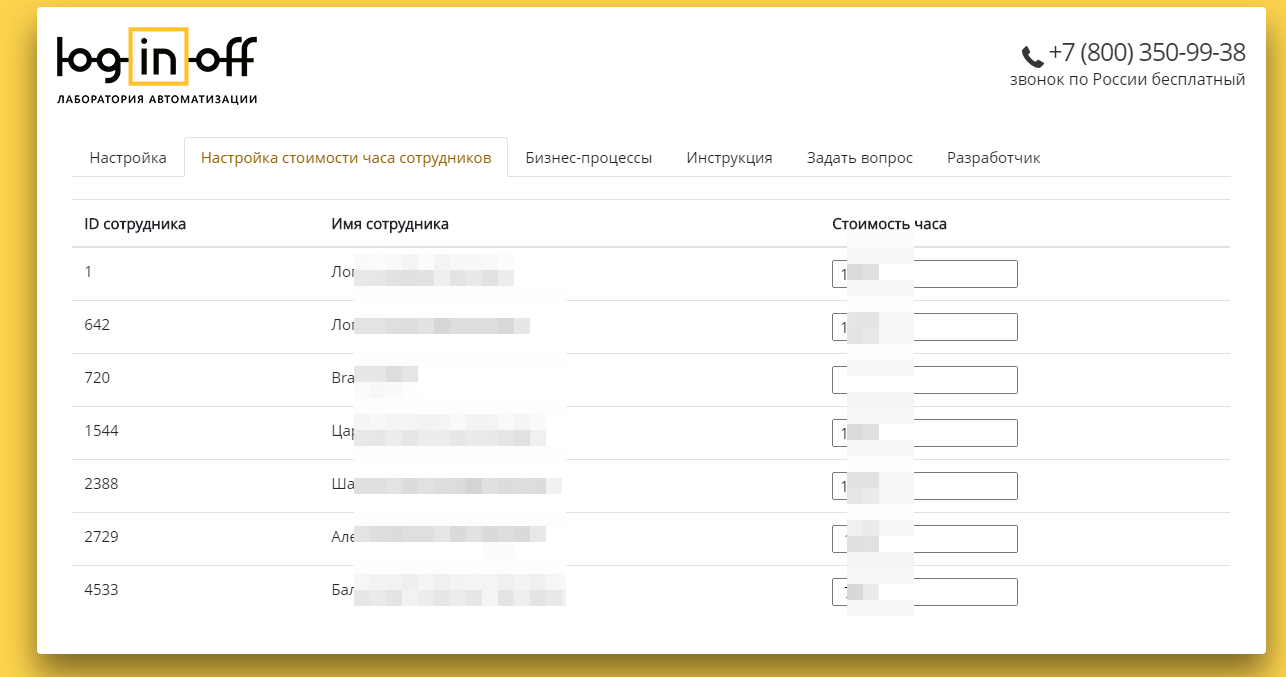 - Расчетная стоимость потраченного времени на каждую задачу с учетом стоимости нормаставки для каждого специалиста.