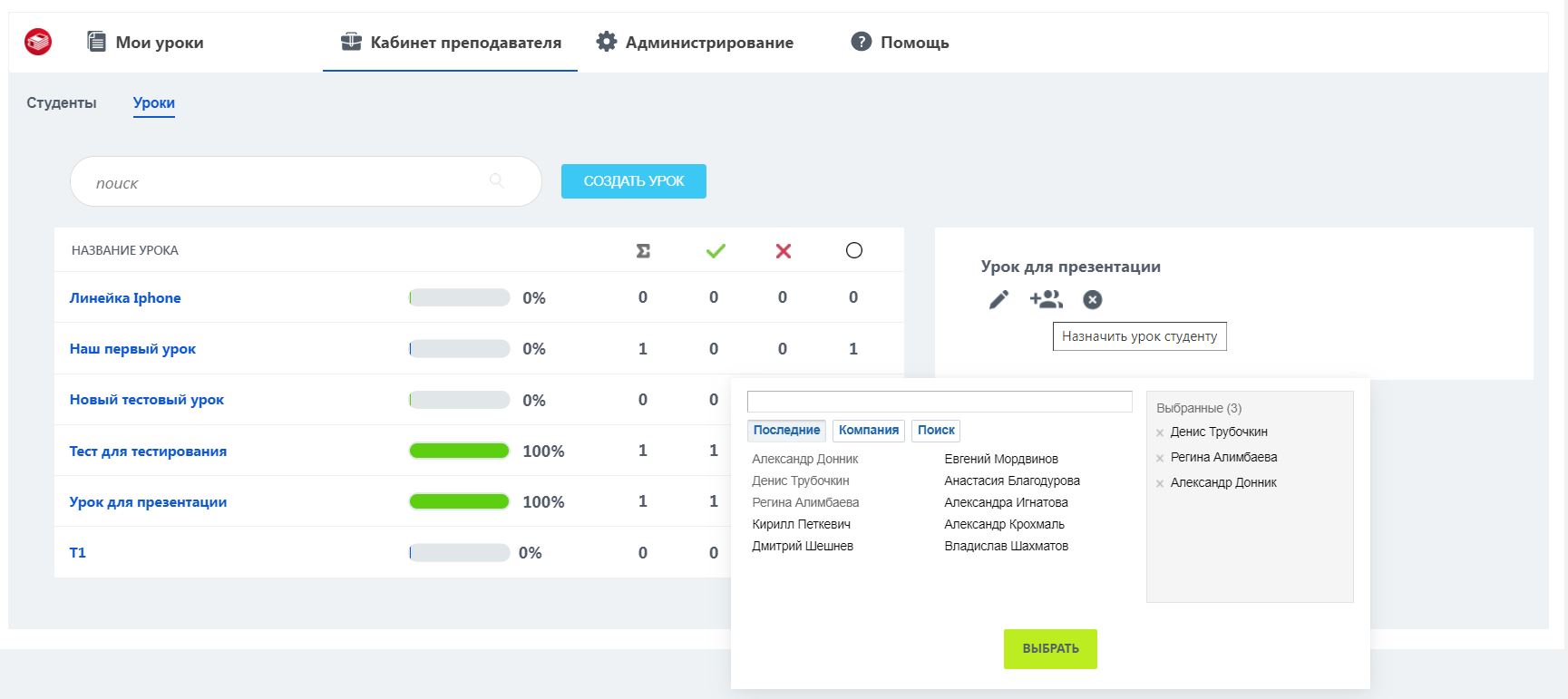 Только преподаватель сможет создать, назначить и проконтролировать статистику по уроку. А кто является преподавателем или студентом, решает администратор системы с помощью простого и интуитивно понятного интерфейса, который позволяет настроить роли доступа к приложению.