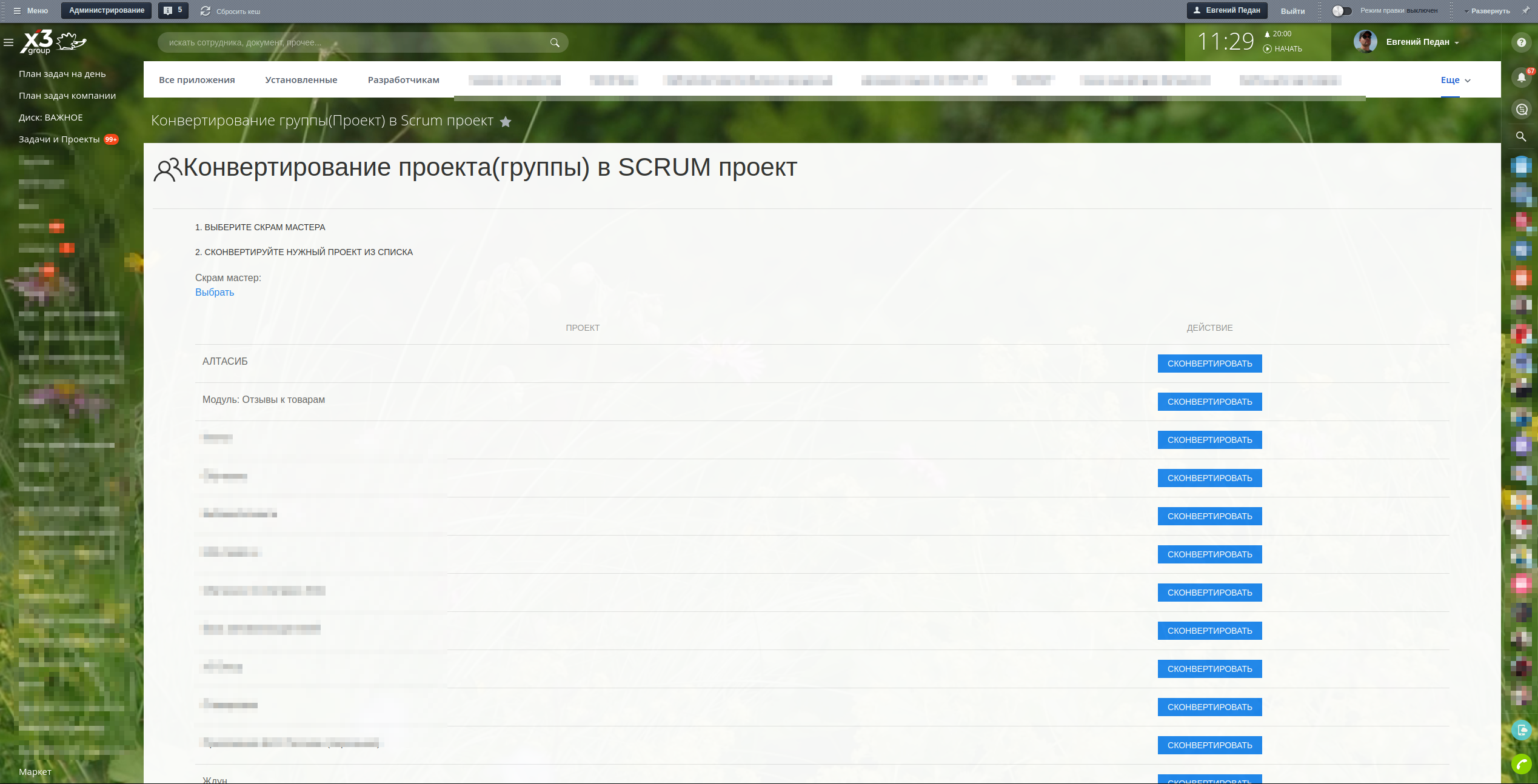 Конвертирование проекта (группы) в SCRUM (скрам) проект
