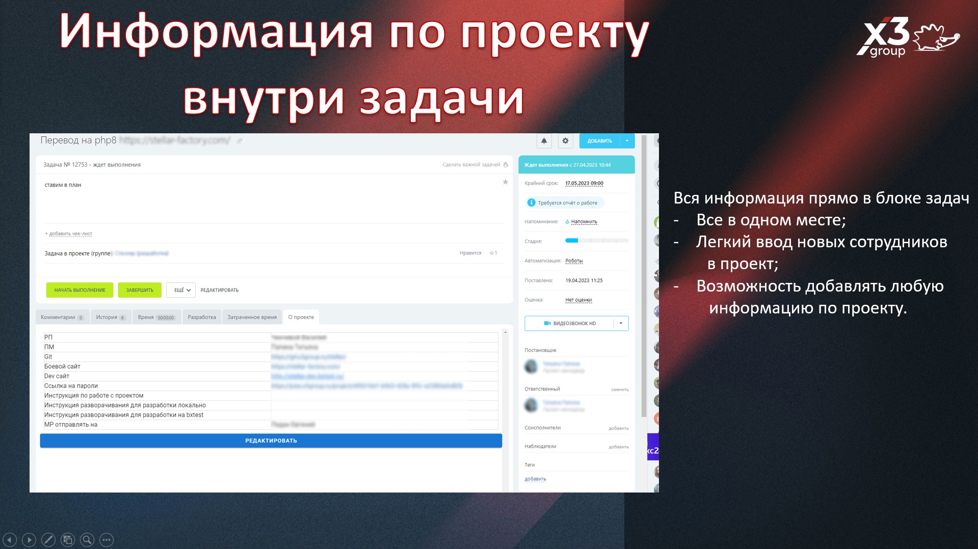 3) Отдельный блок с информацией по проекту.