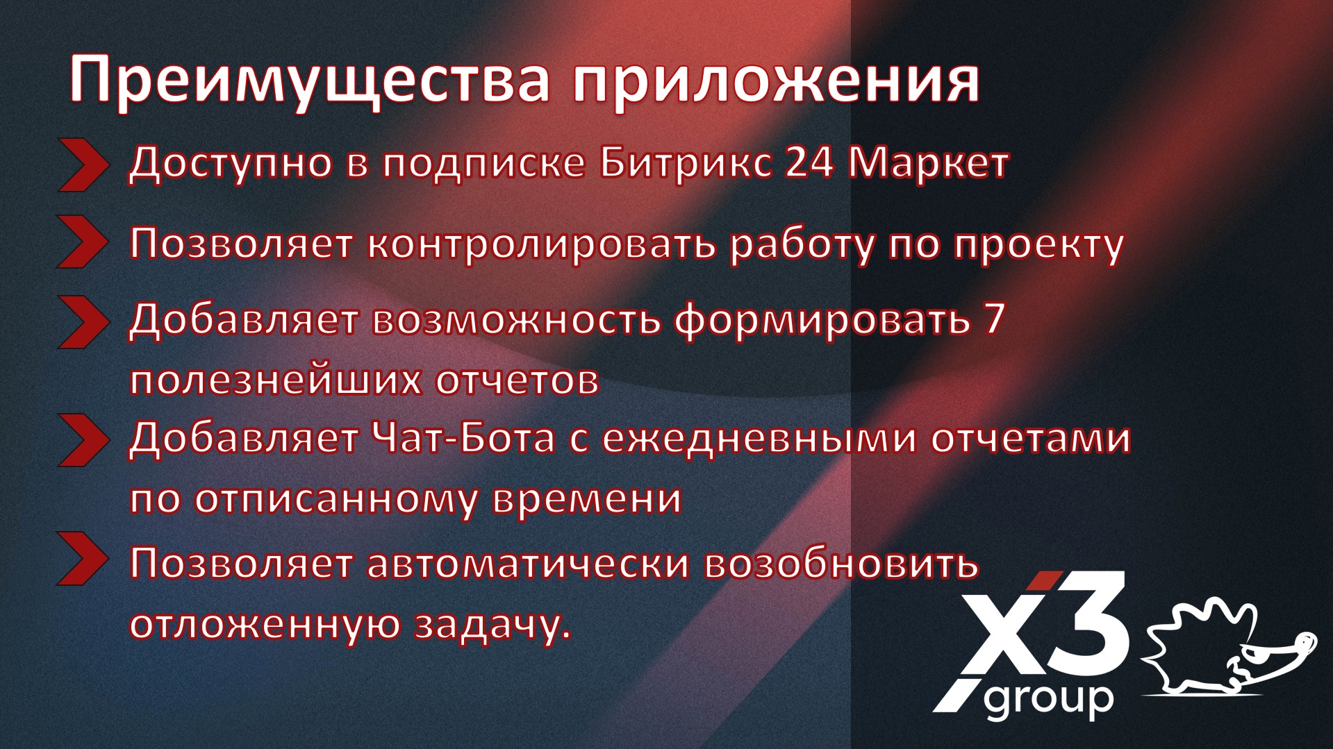 За дополнительной информацией и кейсами по использованию приложения можете обращаться по адресу: dev@x3group.ru