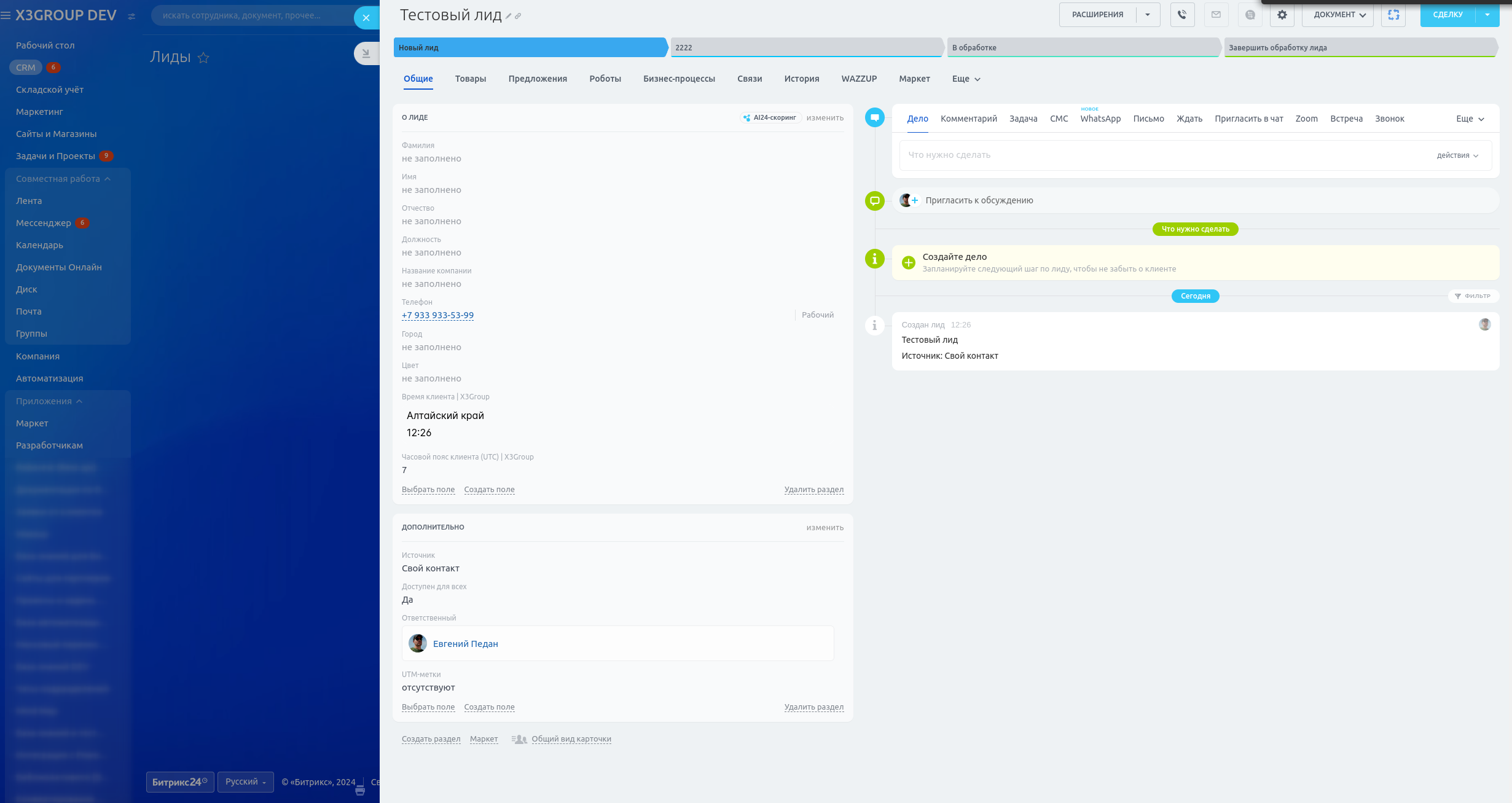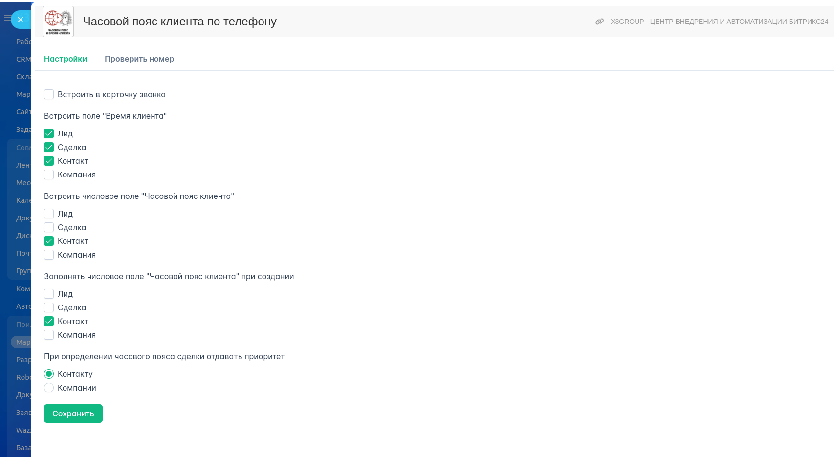 Есть возможность активировать функционал во всплывающем окне звонка Битрикс24 (галочка Встроить в карточку звонка).