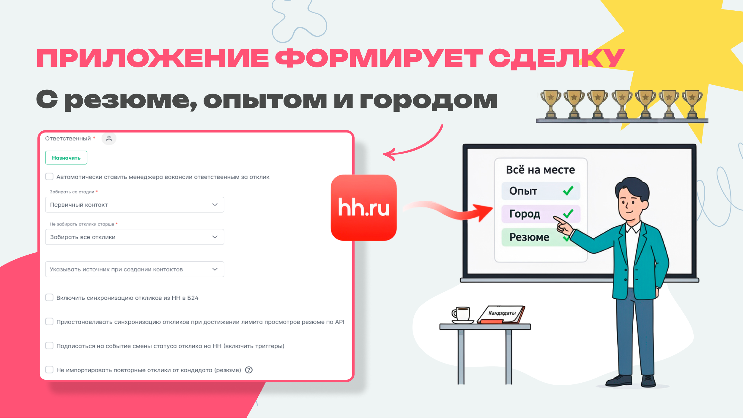 Каждый день вы тратите часы на копирование данных из hh.ru в CRM? Пора закрыть эту потребность автоматически.