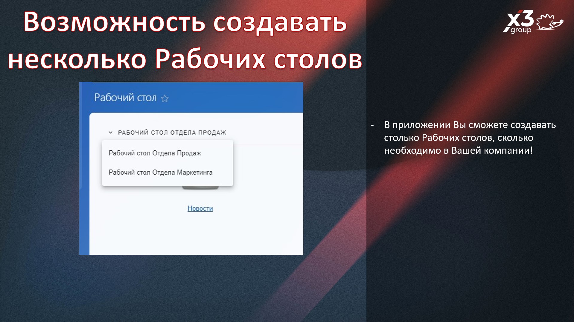 - Приложение позволяет настроить несколько рабочих столов для разных групп пользователей.