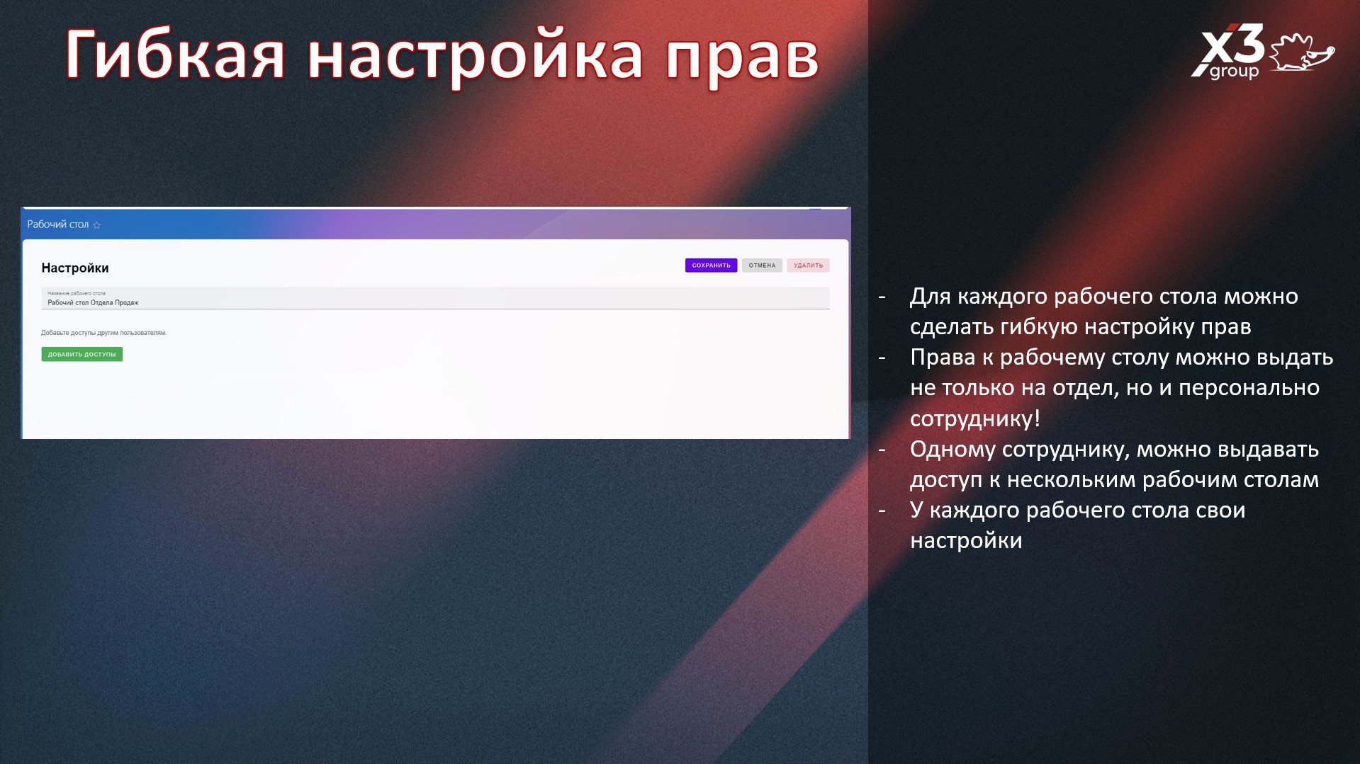 Для каждого отдела Вы сможете настроить свой рабочий стол по потребностям сотрудника.