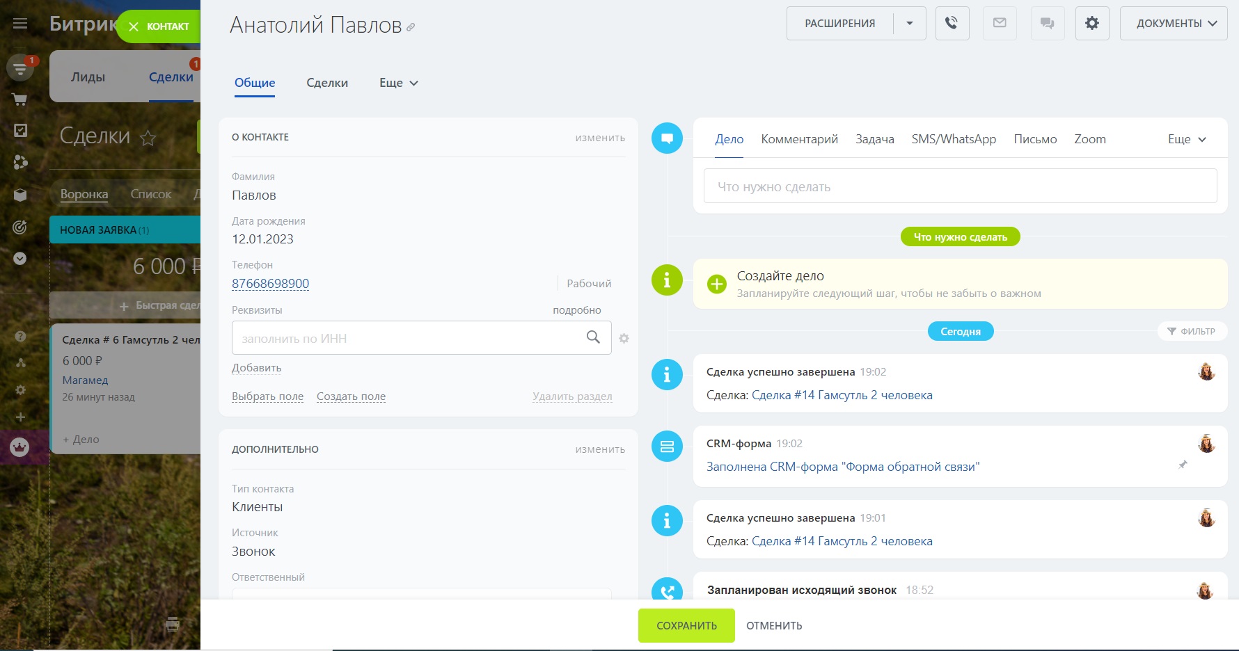 Автоматическое добавление клиента через CRM формы контактных данных