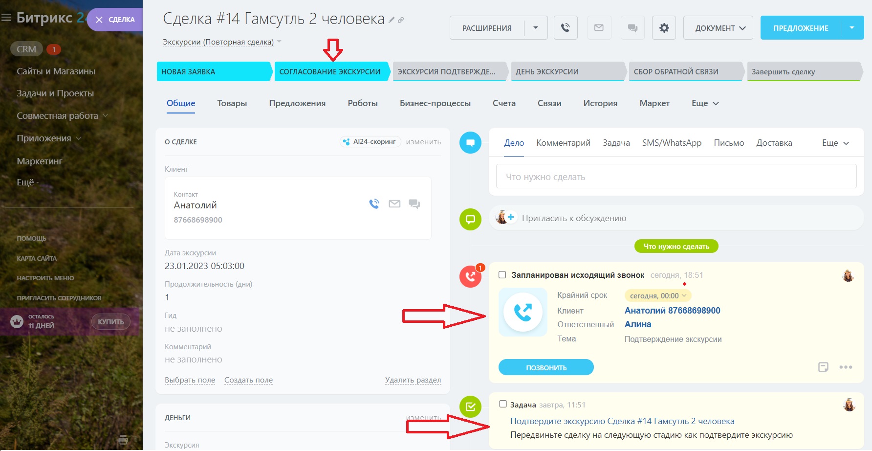 В отраслевую CRM для Туризма и Экскурсии выходного дня можно добавить: