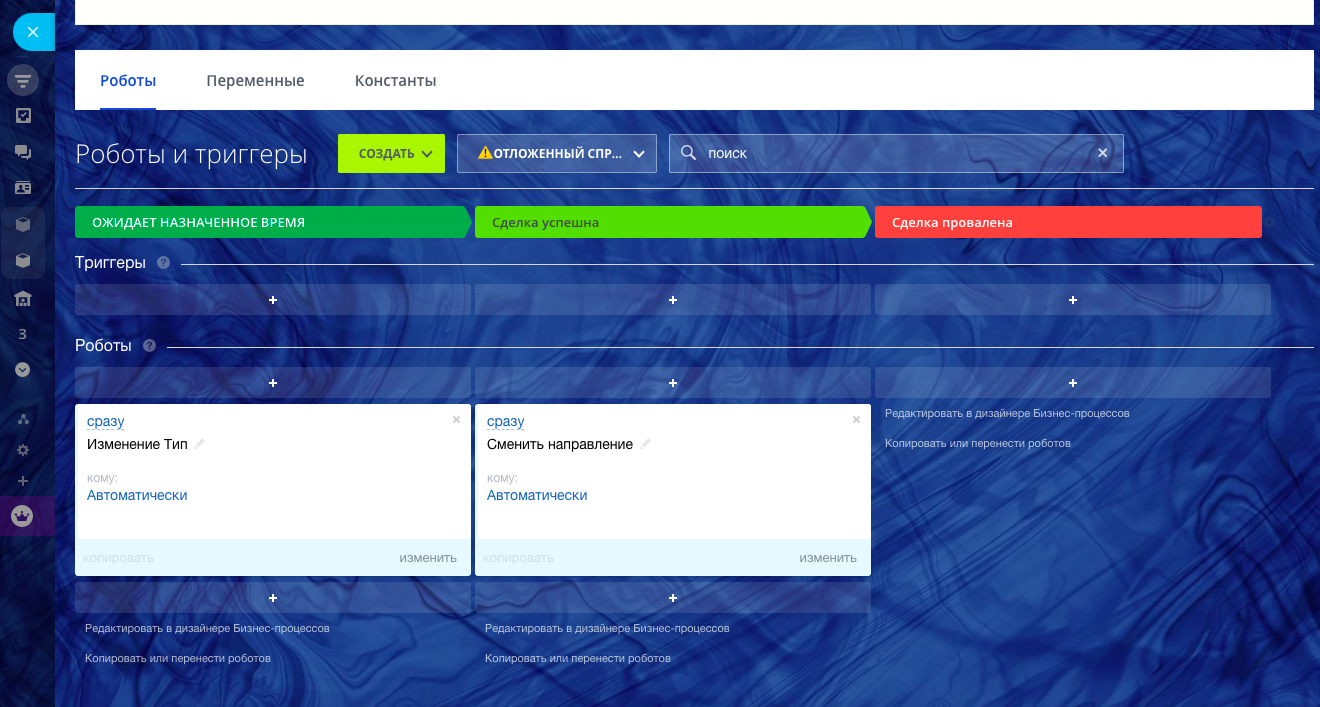 CRM Натяжные ПОТОЛКИ помогает работать как компании внутри, так и с клиентами в автоматическом режиме. В данном решении корректно учтены все этапы для правильного расчета конверсии, контроля менеджеров и отработки рекламного бюджета! Автоматические Вотсап и смс сообщения удерживают клиента, пока он особенно горячий, в течение 7 дней. Мы стремимся свести к минимуму трудозатраты и человеческий фактор. Готовая CRM прекрасно справляется с этой задачей!