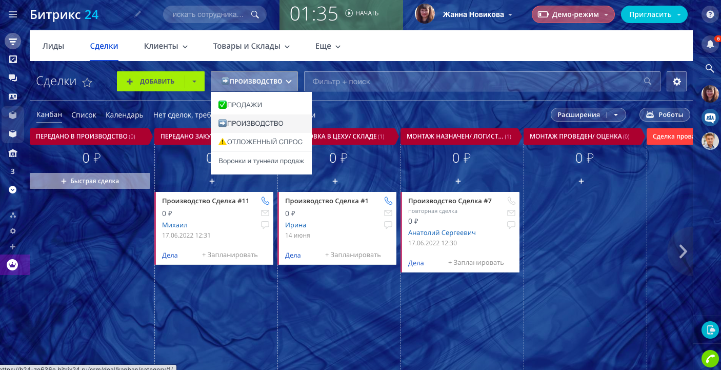 Подходит для процесса продажи, монтажа и обслуживания натяжных потолков. Данное решение включает в себя все последние новинки Битрикс24. Все готово для работы: нужные поля, данные, воронка продаж, воронка производства, воронка доп. продаж, складской учет.