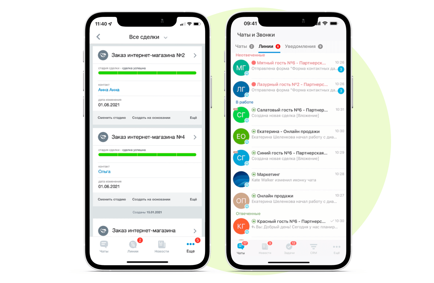 Все Дела, Контакты, Компании, Сделки, Счета, Предложения, Лиды, Товары — у вас в смартфоне. Заведите новый лид или смените статус сделки прямо на переговорах с клиентом.