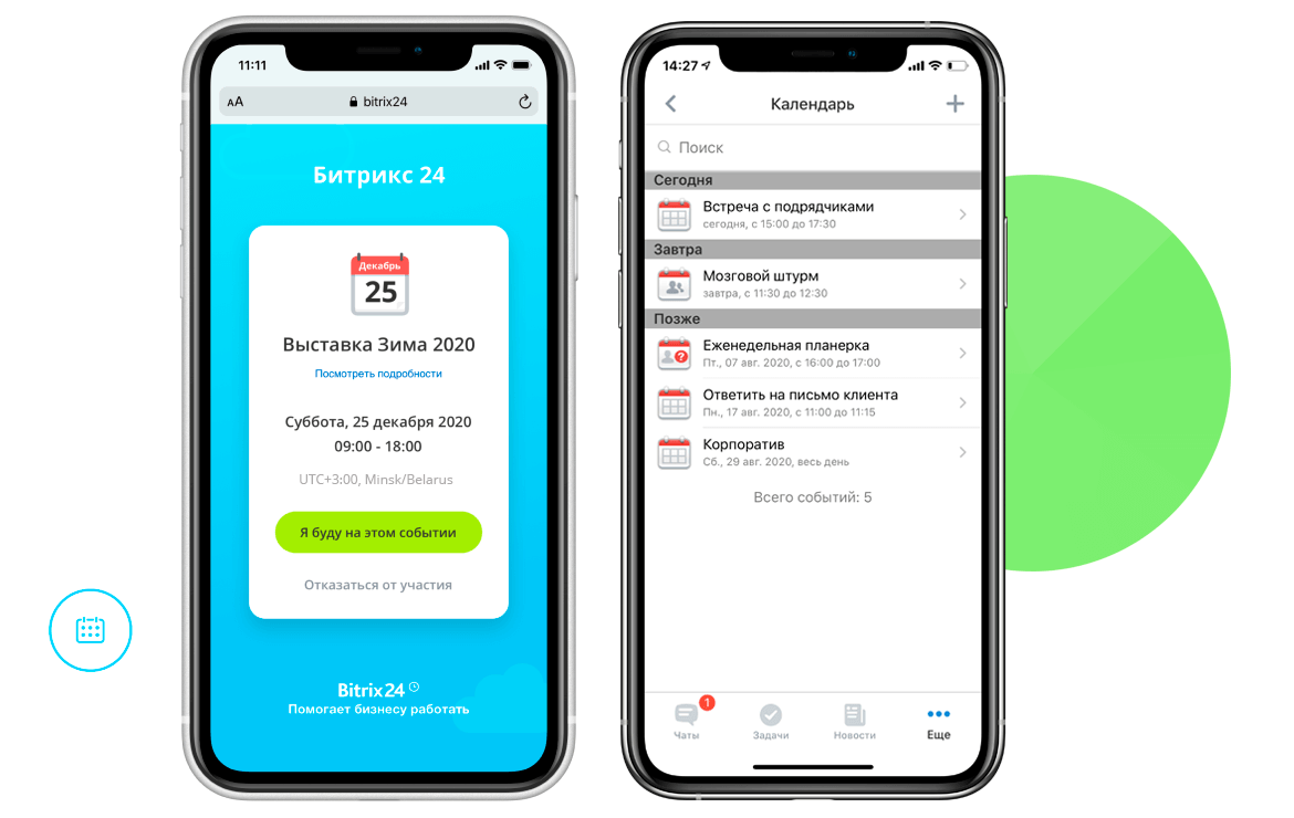 В мобильном приложении всегда «под рукой» актуальный список встреч, планерок и собраний на ближайшие месяцы. Календарь синхронизируется с iOS и Android.