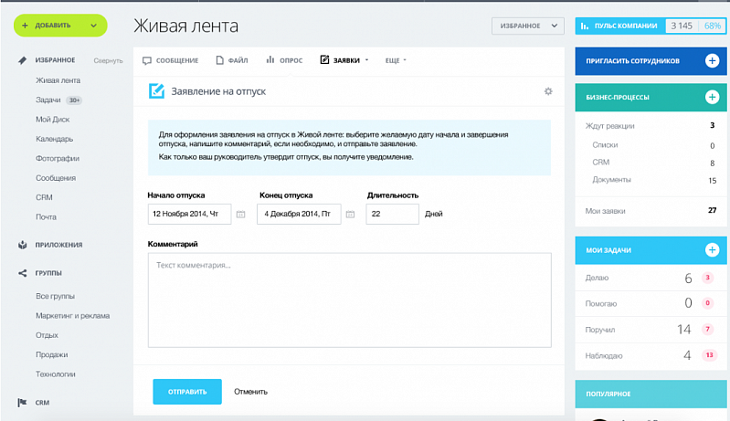 Типовых процессов в компании много, все не упомнить. Чтобы найти нужный, зайдите в раздел «Процессы», либо воспользуйтесь поиском.