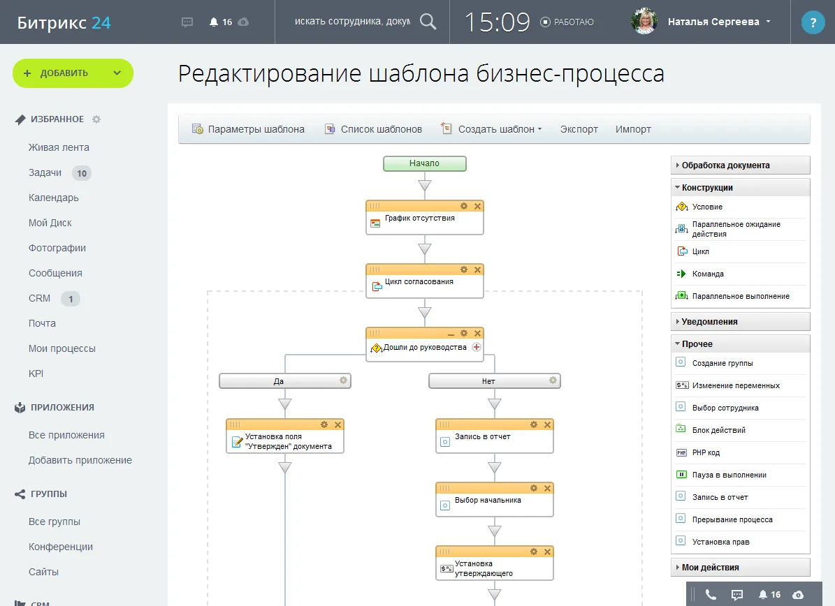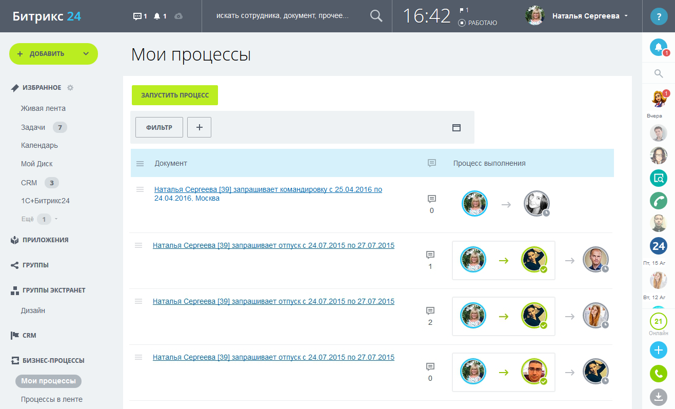 Бизнес-процесс готов к работе после завершения настройки. «Битрикс24» позволяет запускать сколько угодно процессов, с произвольным количеством действий и участников.