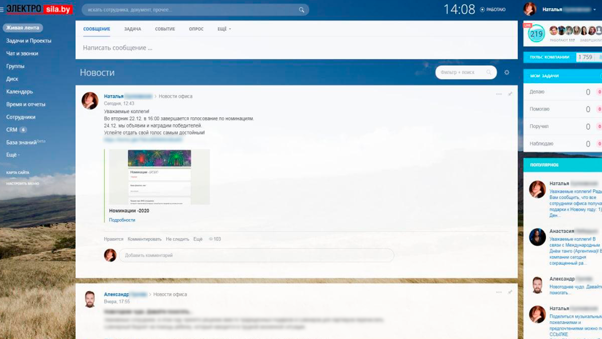 Мы и раньше публиковали профили сотрудников, новости компании — в самописной системе. Но с появлением “Битрикс24” такая лента стала более живой, красочной. Каждый человек может сам поменять свою фотографию. Поставить лайк, увидеть день рождения коллег — такие эмоциональные мелочи важны для персонала.