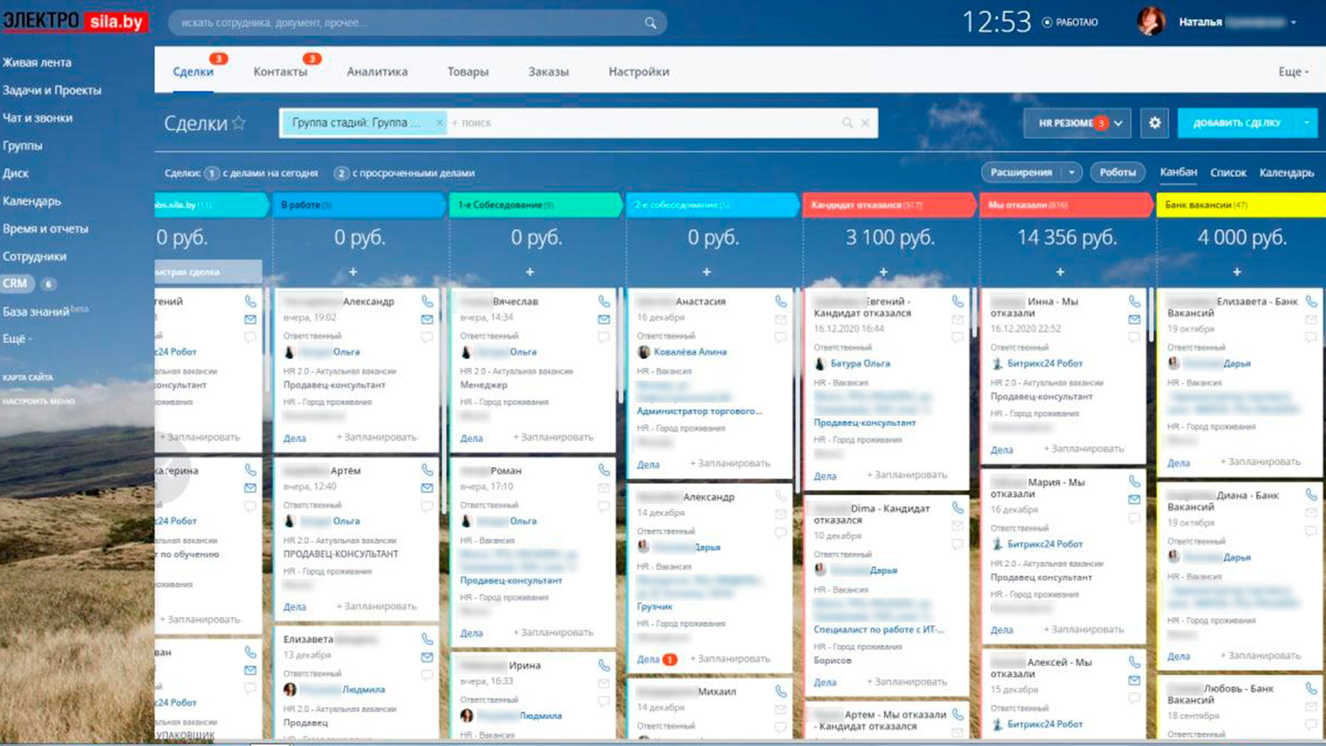 некоторые кандидаты “терялись” в воронке найма. А сейчас “Битрикс24” не позволяет этого сделать: сразу появляется уведомление в блоке вакансий, вся информация