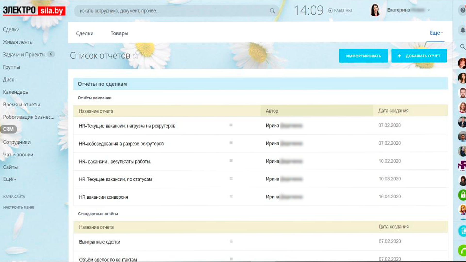 а потом появились ежедневные пятиминутки-созвоны в “Битрикс24”. И, конечно, очень выручили на “удаленке” отчеты, о которых я говорила в самом начале. В любой