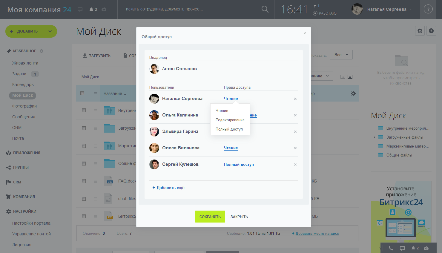 «Битрикс24» - безопасный облачный сервис совместной работы. Ваши данные, загруженные в «Битрикс24», будут надежно храниться, и только вы получите к ним доступ в соответствии с системой прав пользователей.