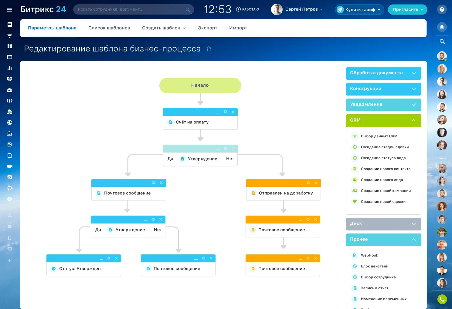 В вашей компании уже сложилась система работы по этим сценариям, вам остается только формализовать и регламентировать эти бизнес-процессы и перенести их в Битрикс24. Новым сотрудникам уже не придется объяснять, к кому, когда и какой пакет документов нужно собрать, чтобы оплатить счет.