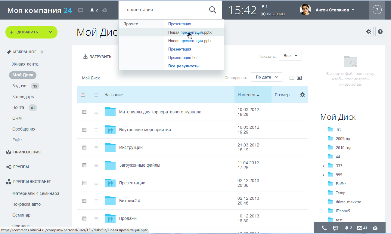 ««Битрикс24» позволяет редактировать документы одновременно нескольким сотрудниками компании, организовывать работу офиса онлайн. CRM фиксирует каждое изменение файла, при желании легко вернуться к предыдущей версии. Так снижается вероятность потери информации и повышается оперативность работы. Кроме этого, рабочие данные постоянно доступны. Достаточно выйти в Интернет и работать с документами онлайн.