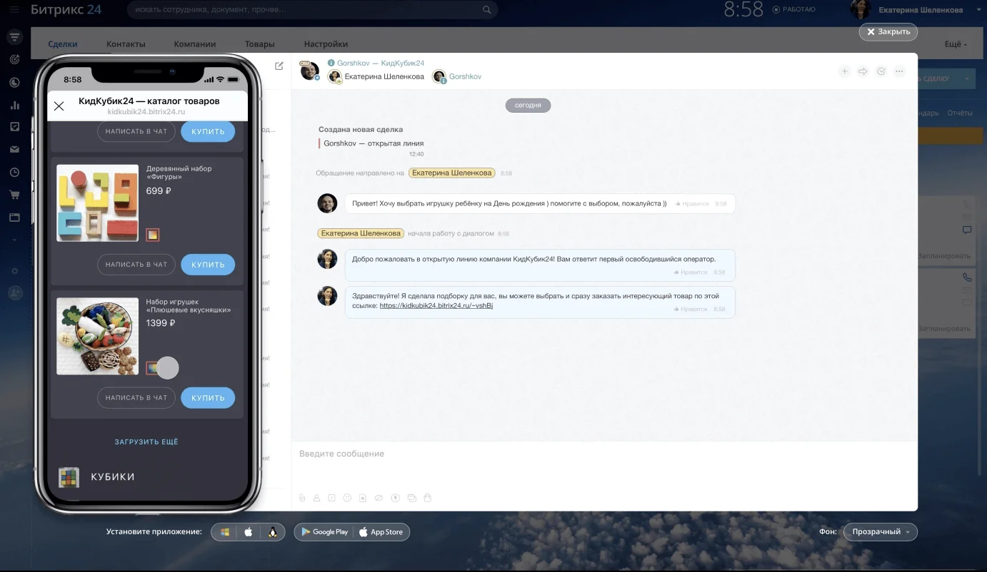 С Центром продаж в Битрикс24 это очень и очень просто! Делайте для покупателя индивидуальные предложения по товару, предлагайте заполнить заявку, принимайте оплату тут же через различные платёжные системы. Не упускайте своего потенциального клиента!