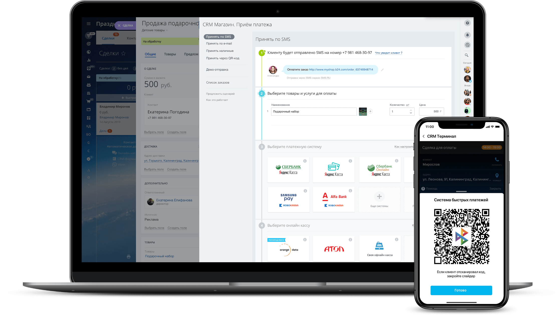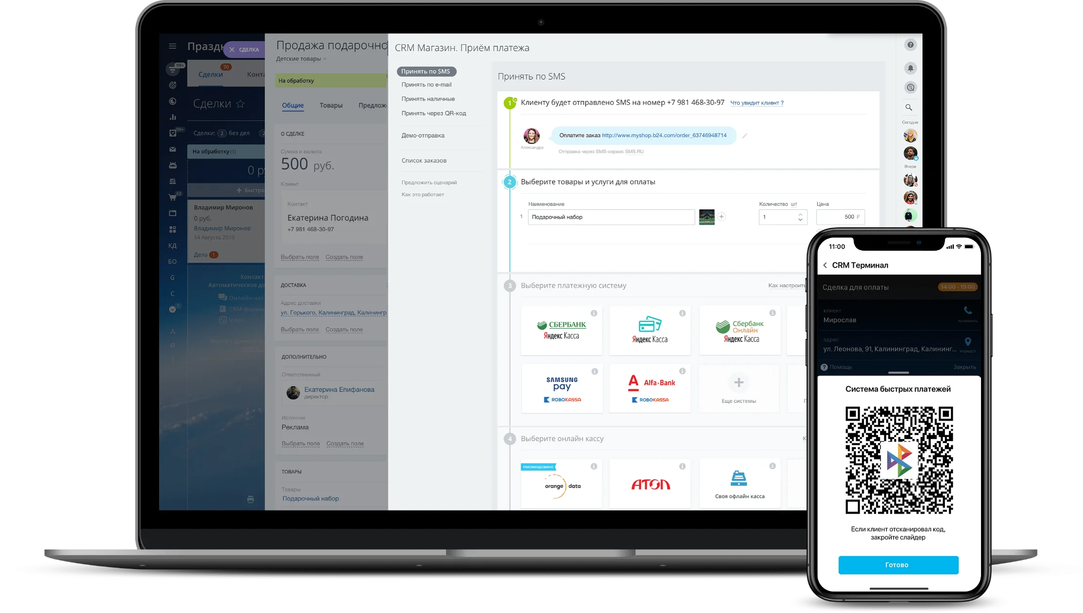 Не упустите ни одного клиента на этапе оплаты! Прямо в CRM cгенерируйте ссылку быстрой оплаты, отправьте её покупателю через SMS, и он оплатит товар любым удобным ему способом.