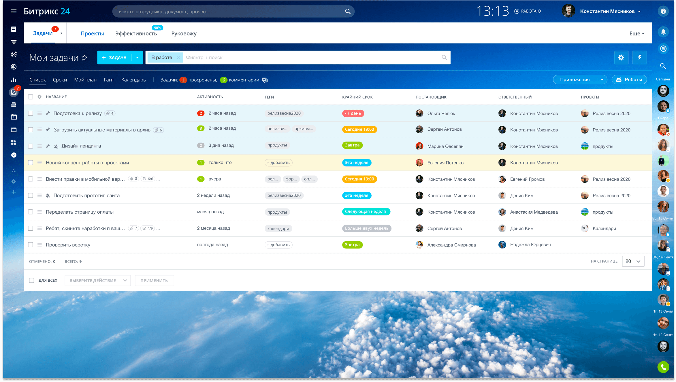 Работать с задачами теперь так же просто, как с чатом! Любые изменения в задаче моментально поднимают ее наверх списка, чтобы вы смогли вовремя отреагировать. Распределяйте права доступа к задачам как для конкретного сотрудника, так и для целых отделов.