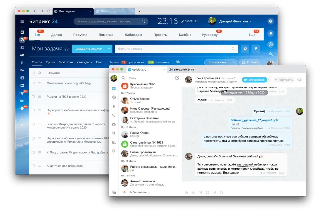 Битрикс24 - это место, где каждый может общаться, совместно работать над задачами и проектами, управлять клиентами и делать гораздо больше.