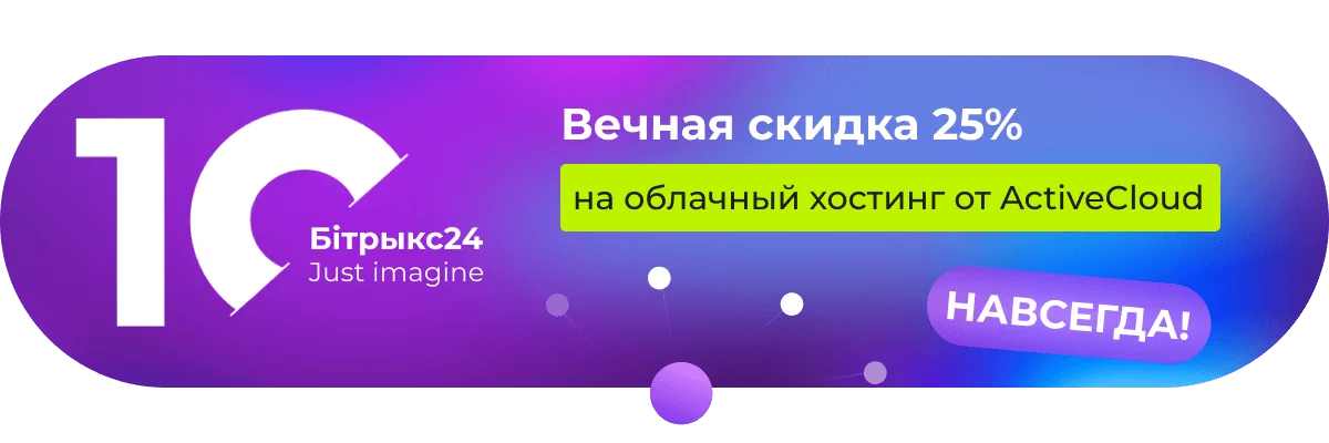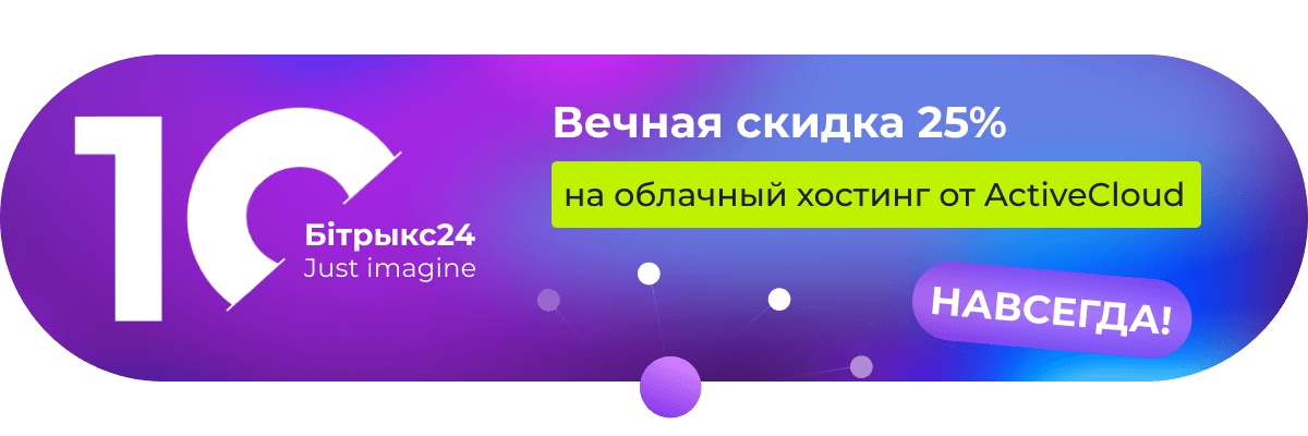 Стартуем наш марафон подарков с уникального предложения: наши клиенты получают пожизненную 25% скидку по промо-коду «Битрикс24» на облачный сервер BitrixCloud от хостинг провайдера ActiveCloud. Акция действует на весь период использования услуги*!
