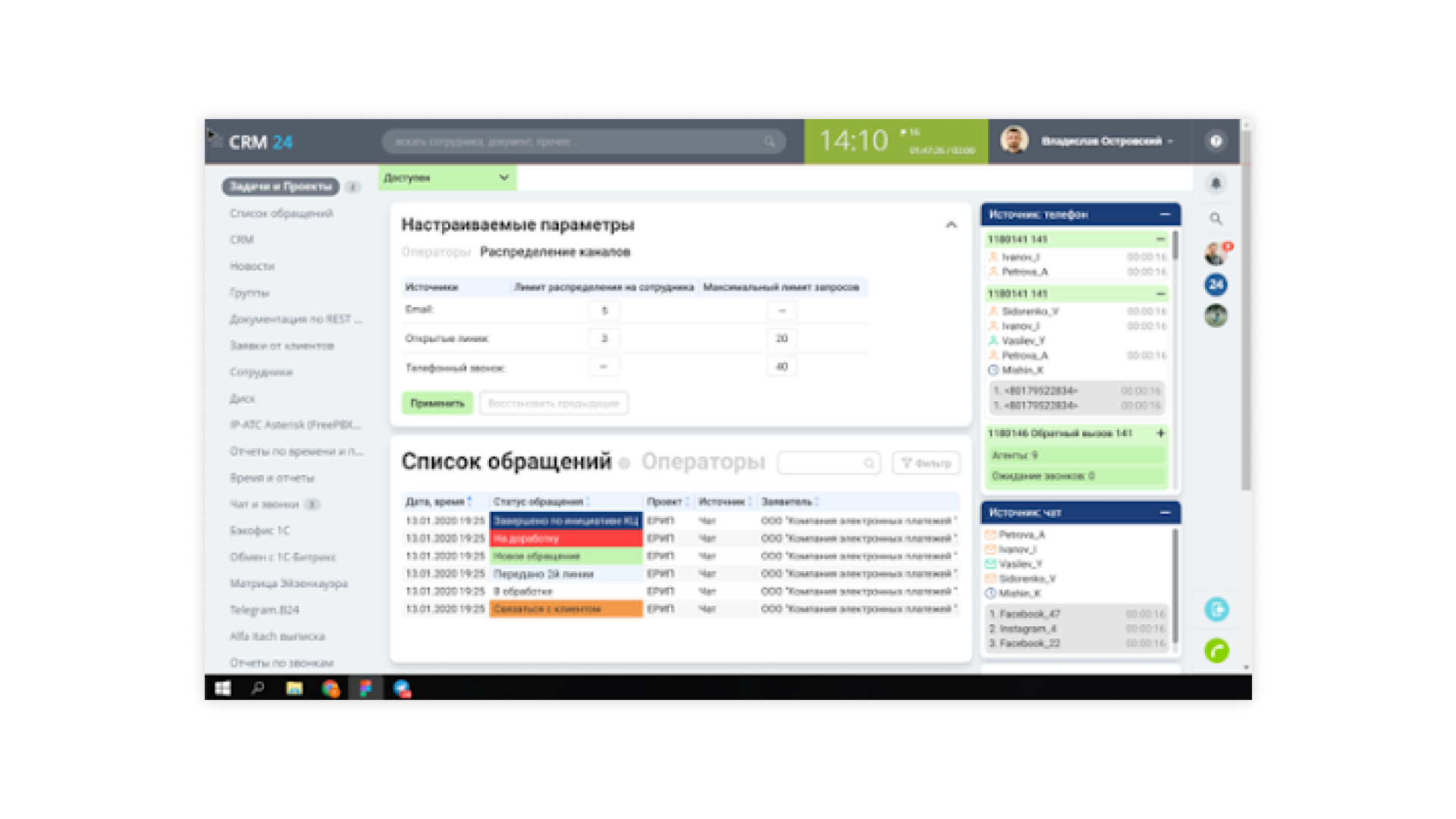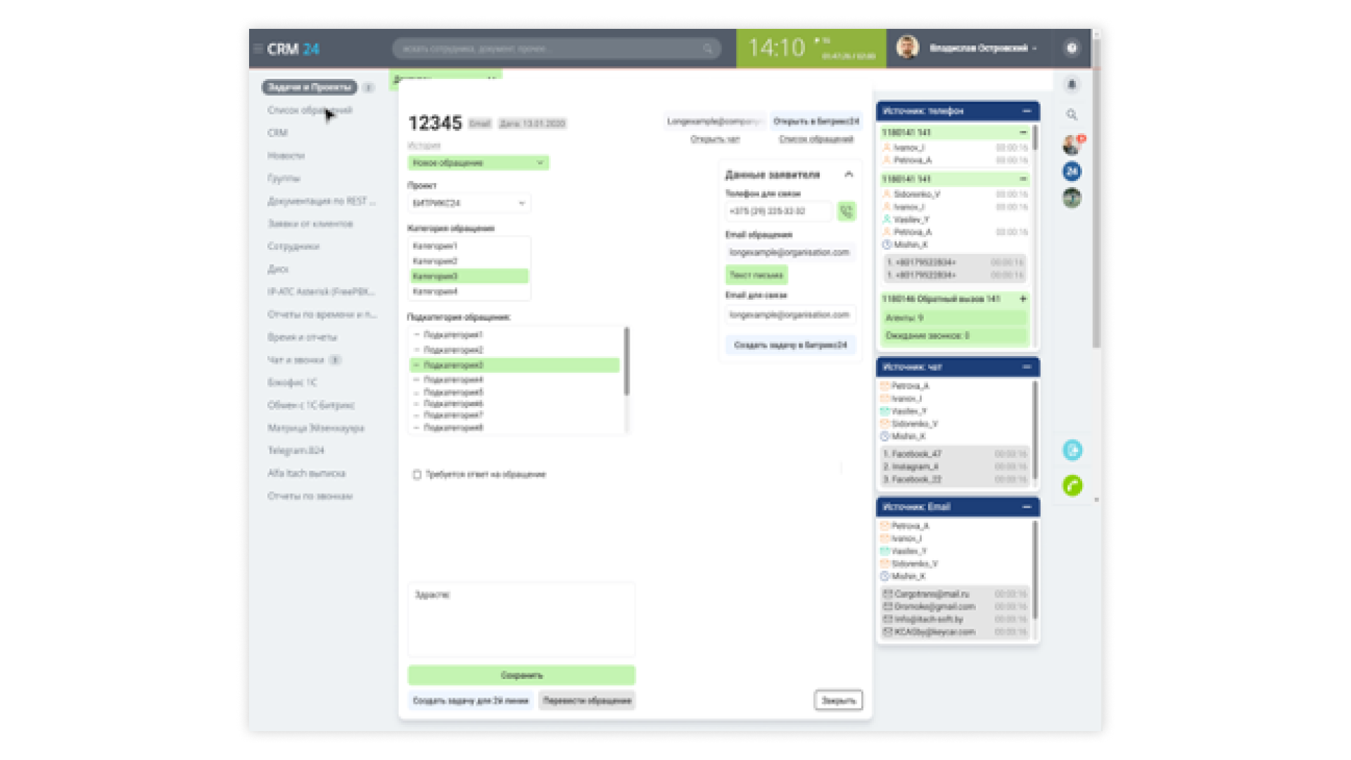 До внедрения Битрикс24 Контакт-центр работал с программным обеспечением, которое не позволяло оптимально решать поставленные задачи, объединять каналы коммуникации по принципу "одного окна" и совершенствовать работу с обращениями. При обработке звонков, электронных писем, сообщений в соцсетях – каждый вид обращения фиксировался в отдельном приложении. В итоге специалисту Контакт-центра приходилось одновременно работать в 4-5 дополнительных программах, в каждую из которых могли приходить запросы от клиентов.