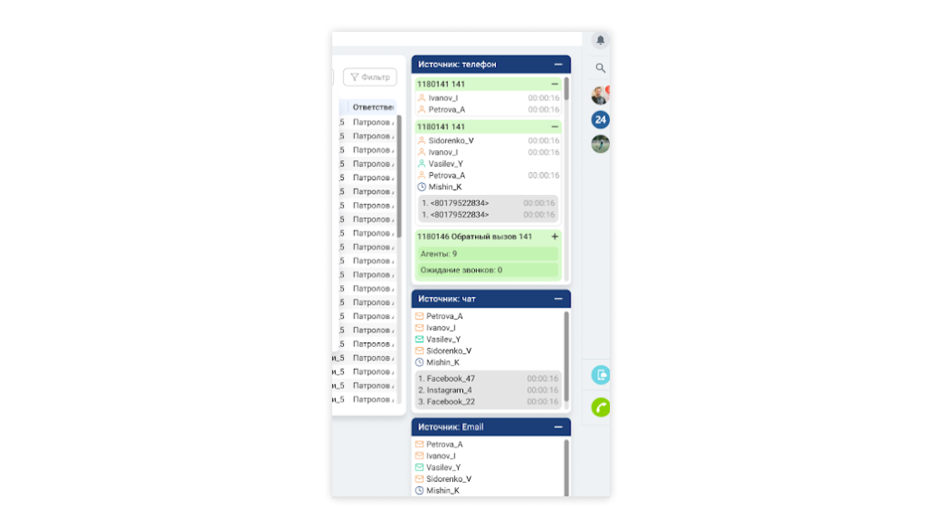 В режиме реального времени менеджеры и специалисты могут видеть: