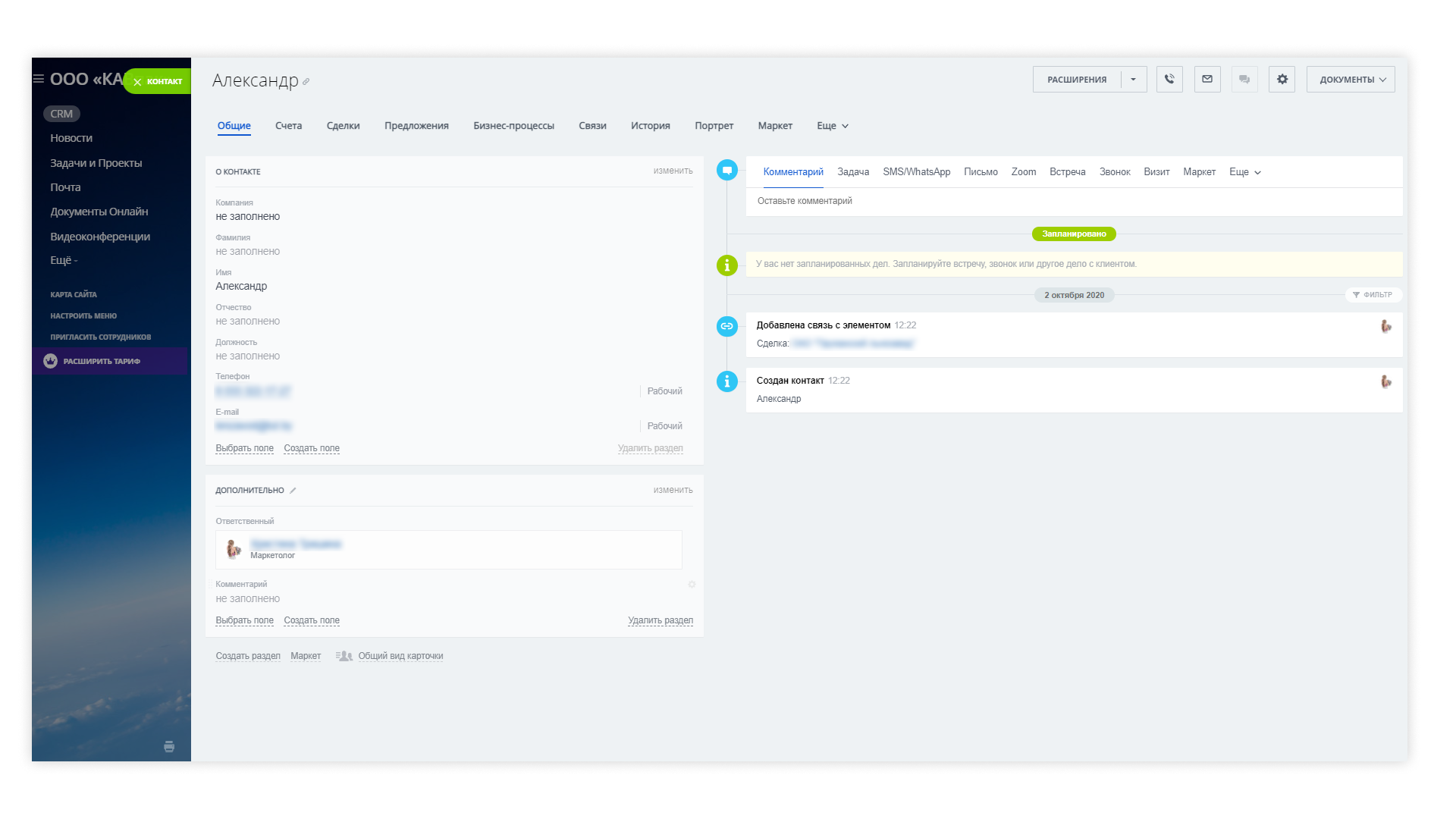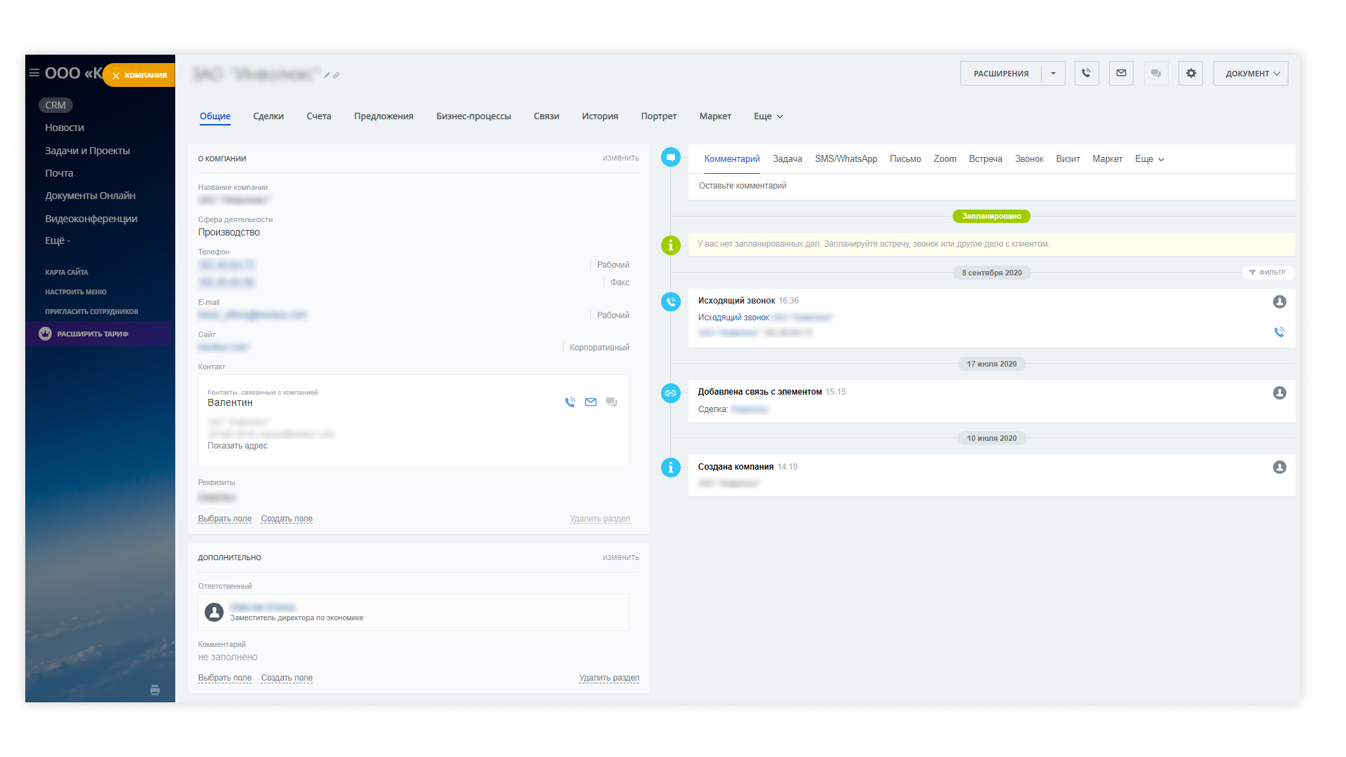 Главная задача по настройке карточек контактов и компаний – почистить ненужные поля и добавить часто используемые именно в этой компании.