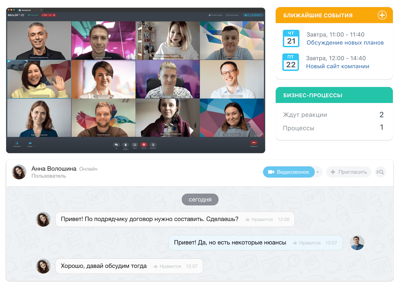 Мгновенно выходите на связь с любым сотрудником, согласовывайте документы и счета, общайтесь с коллегами.