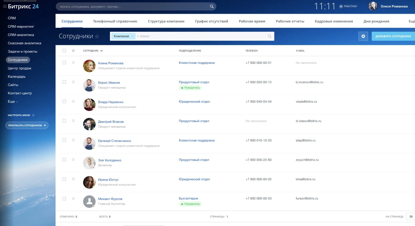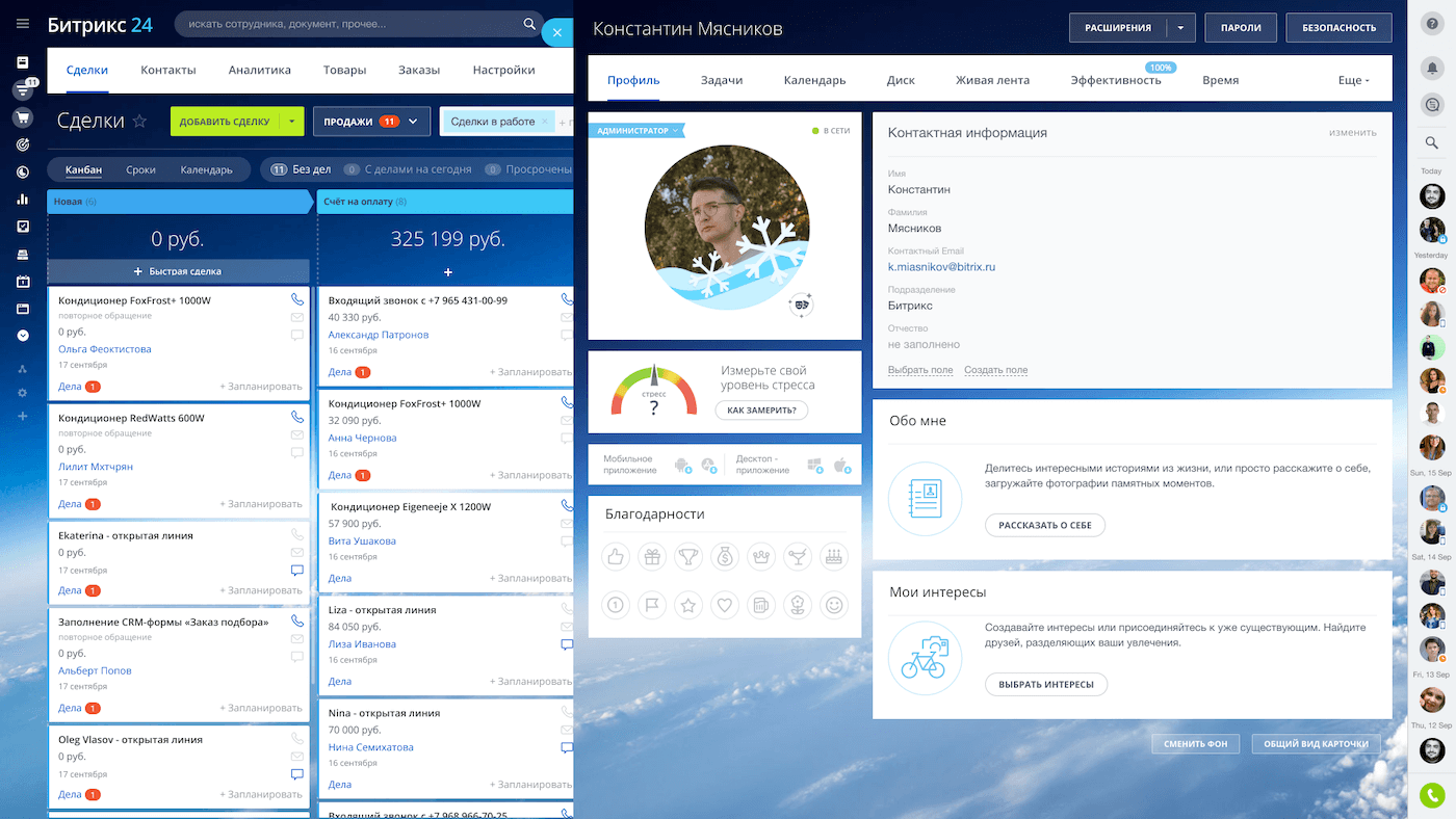 Работая в Битрикс24, вы будете видеть, кто из коллег сейчас в сети. Это помогает чувствовать команду, даже работая дистанционно.