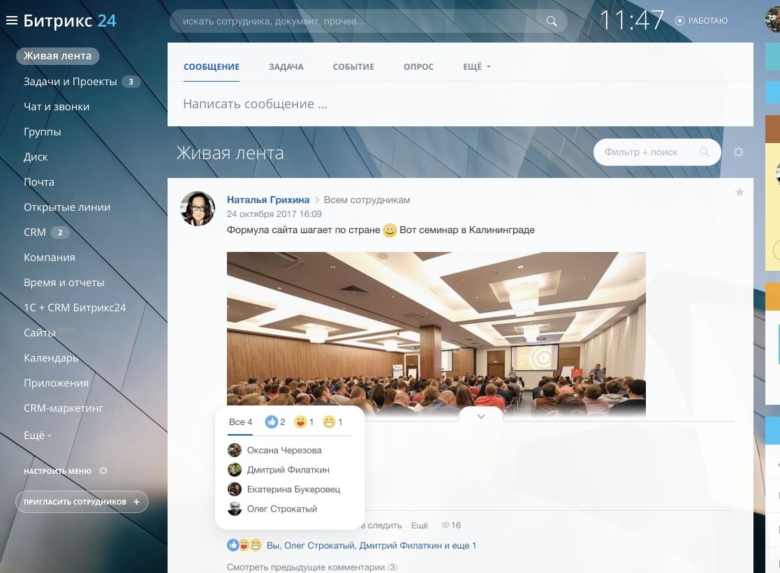 Как начать рабочий день с лайков и хорошего настроения? Зачекиниться в Битрикс24!