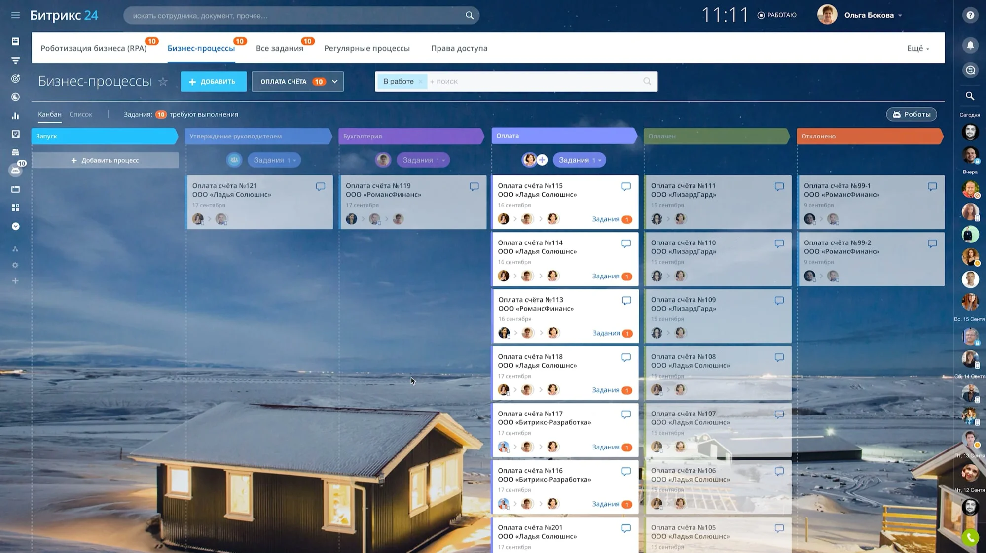 внутри компании: счета, отпуска, командировки будут автоматически направлены по заданной цепочке