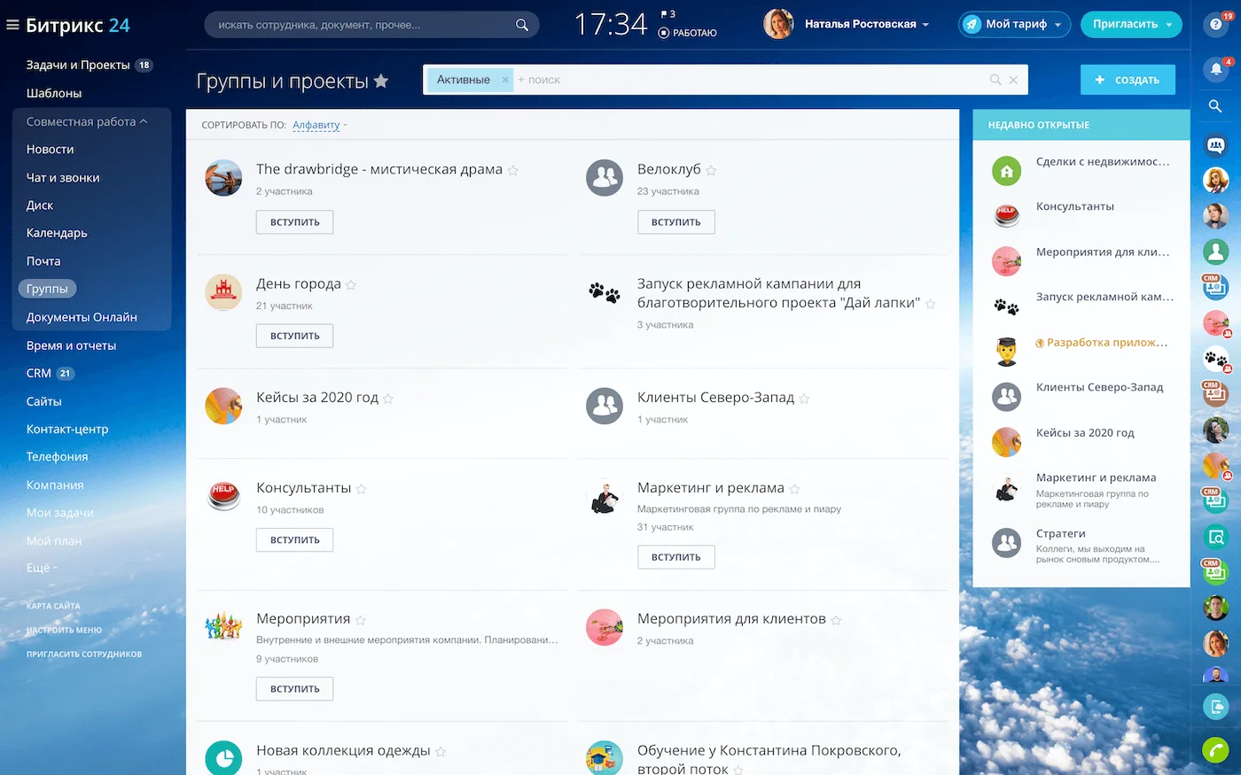 Объединяйтесь в рабочие группы: открытые, закрытые, с внешними подрядчиками, клиентами в экстранете, распределяйте права доступа между участниками.