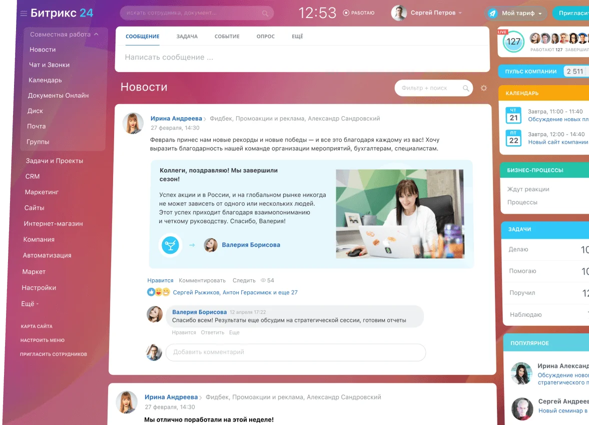 Соберите уникальную главную страницу вашего Битрикс24, наполните ее важными новостями и полезными виджетами, чтобы быть