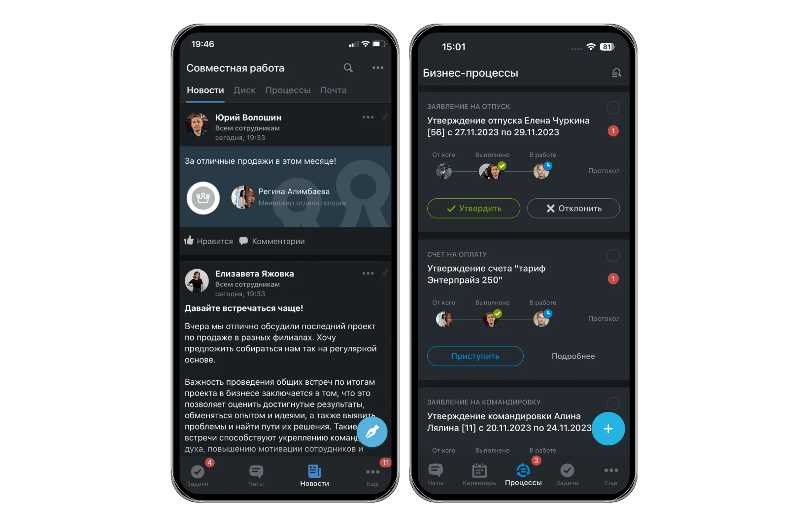 Как быстро оповестить о новостях всех сотрудников одновременно? Написать пост в общей ленте. Это упрощает обсуждения, экономит ваше время на принятие решений.