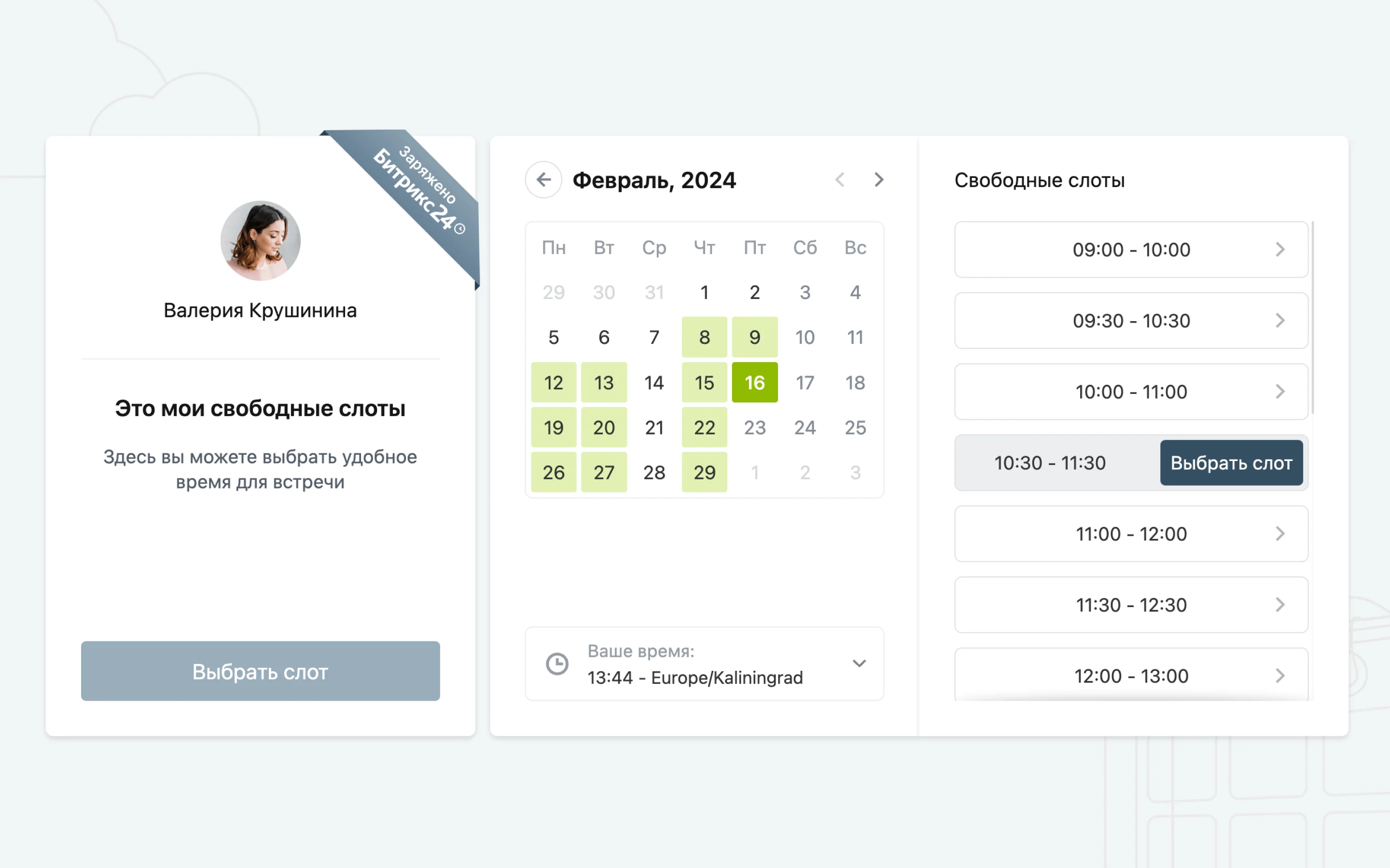 Слоты помогают встречаться даже с теми, кого нет в вашем Битрикс24. Просто отправьте ссылку!