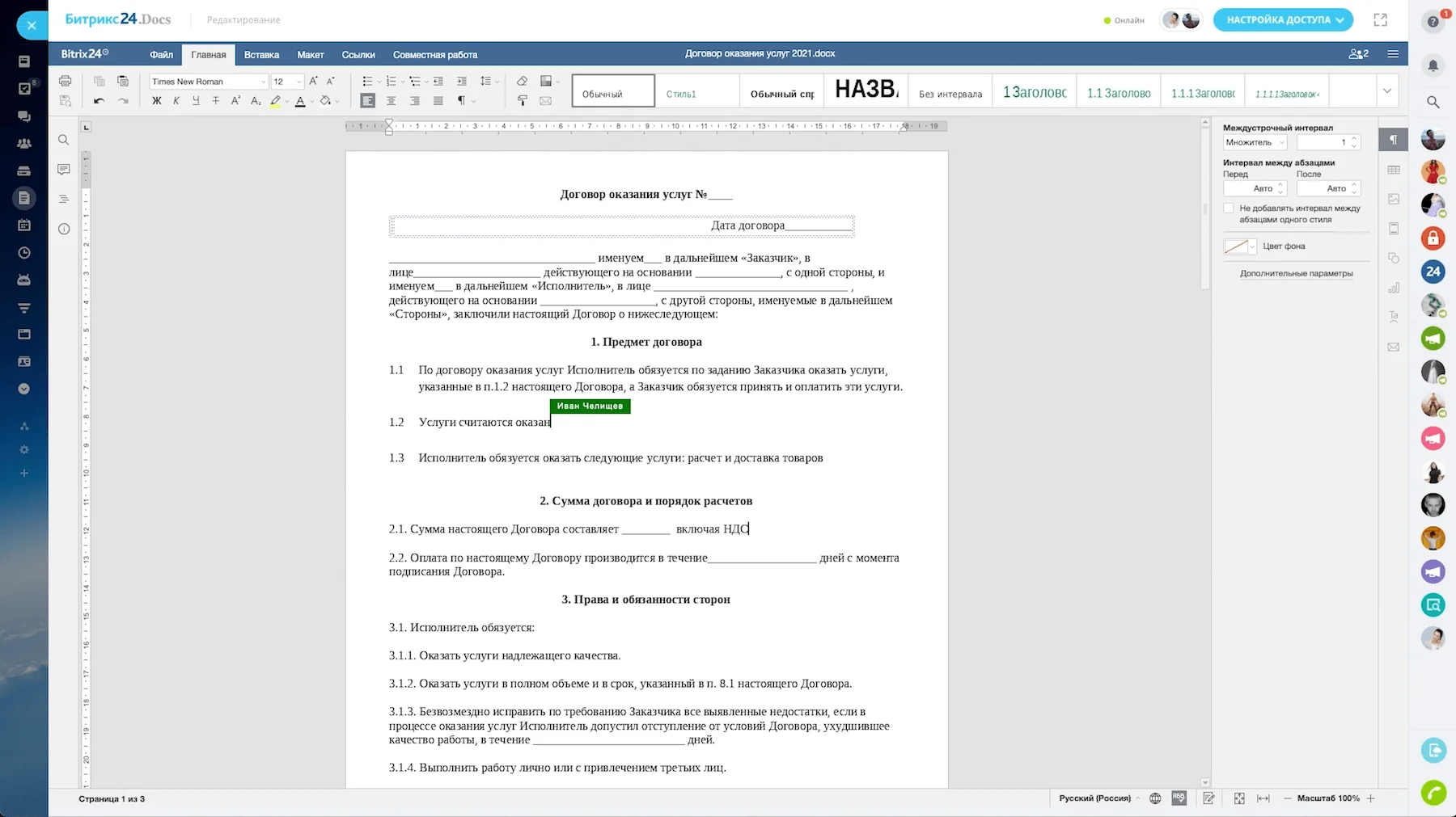 Встроенный онлайн-редактор для совместной работы с документами. Интегрирован со всеми инструментами Битрикс24.