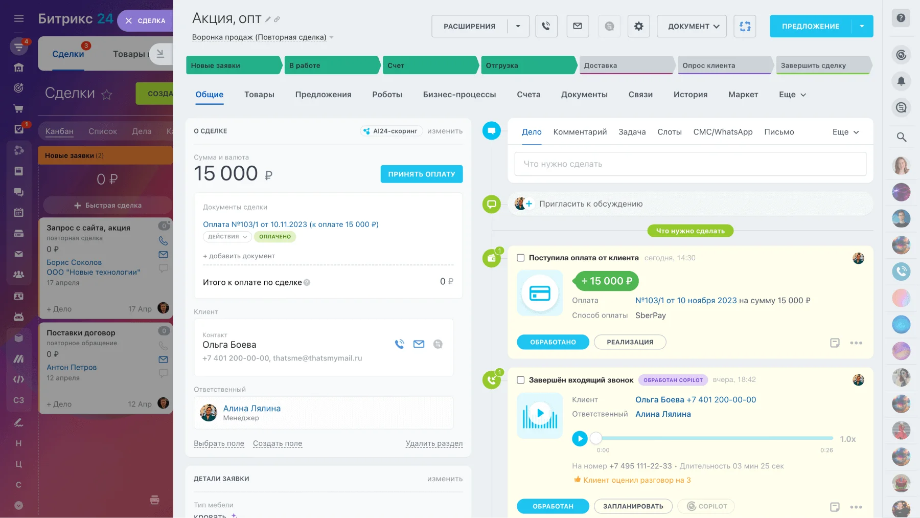 • Оформите доставку прямо из карточки сделки всего в пару кликов
