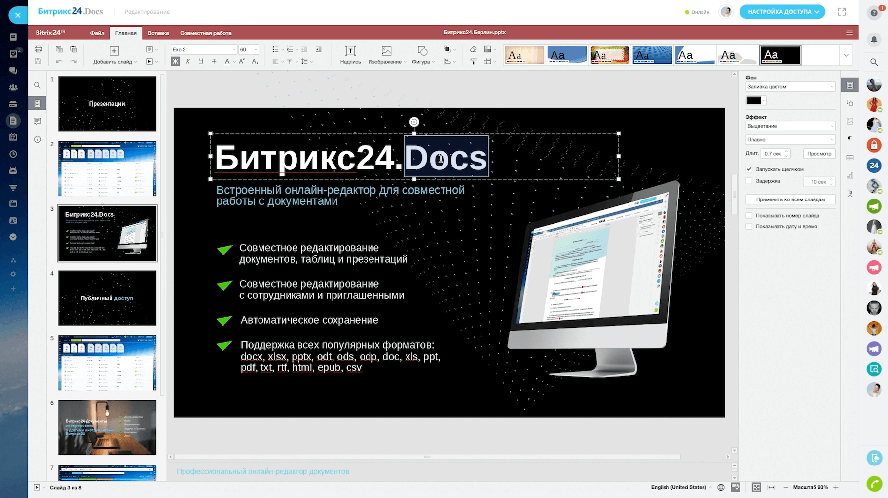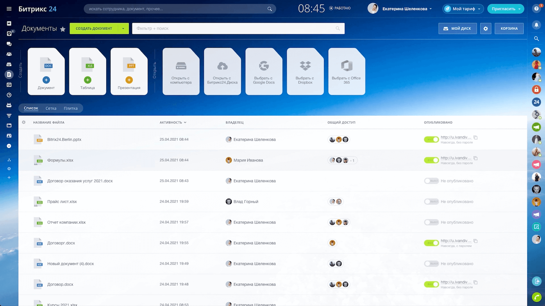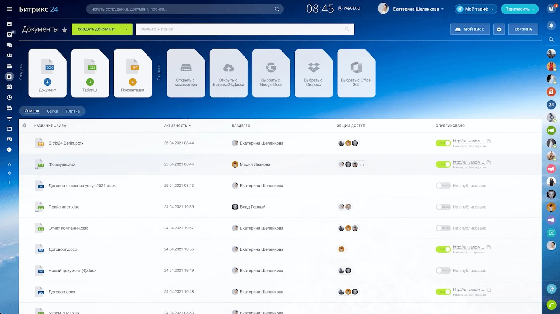 Все документы, с которыми вы работаете, собираются в отдельном разделе в вашем Битрикс24 и удобно сортируются.