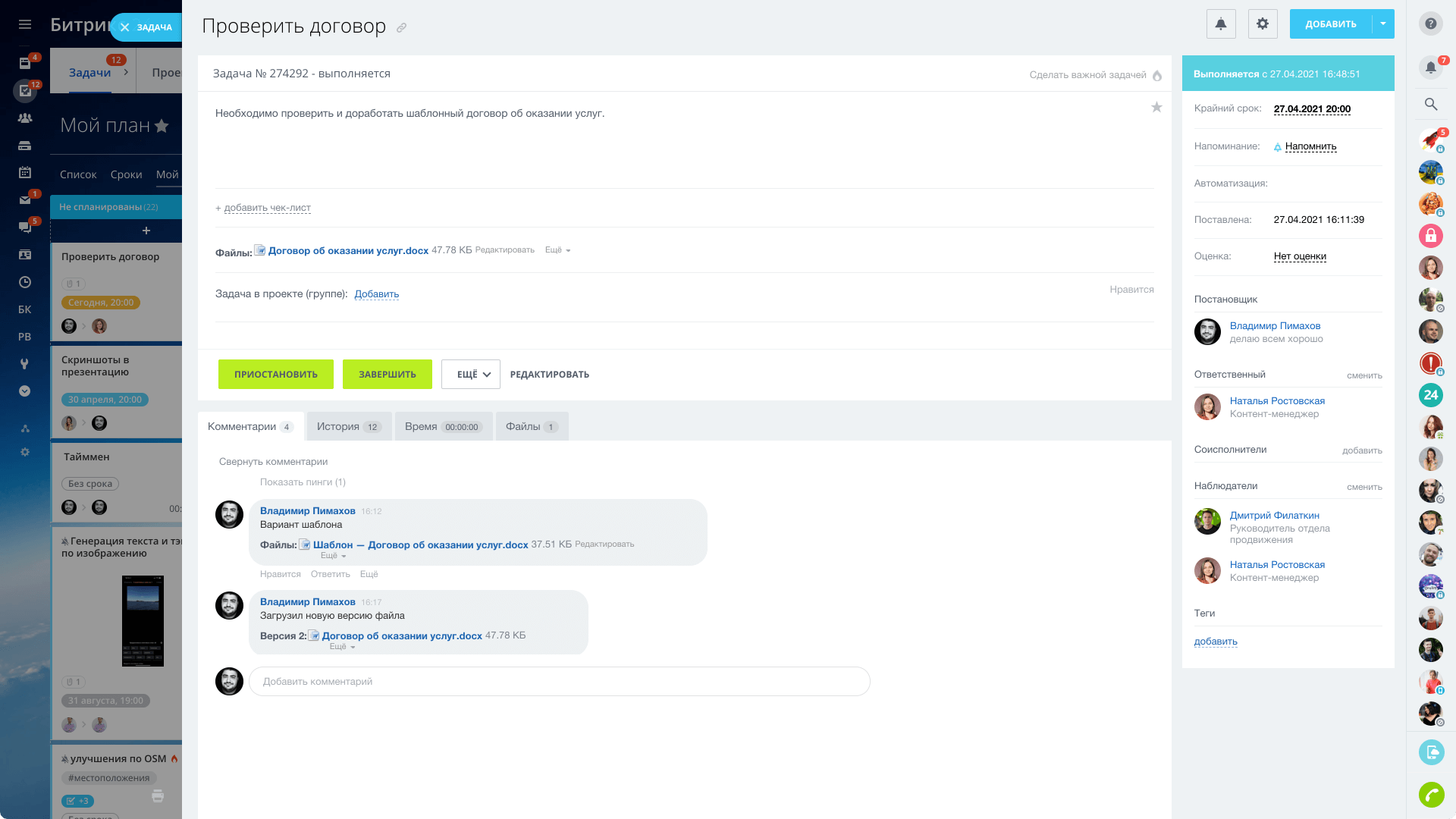Легко найти нужный документ, проверить права доступа к нему, прикрепить любой файл к задаче, посту или событию в календаре. Актуальные версии документов всегда будут под рукой.