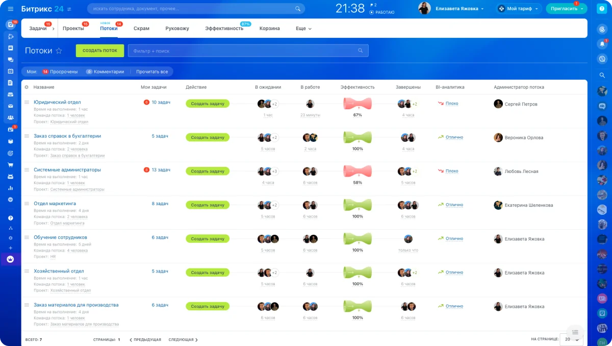 Битрикс24 Потоки — уникальная методология работы с задачами по теории ограничений Голдратта. Выявляйте узкие места, оптимизируйте их и непрерывно улучшайтесь на всех уровнях.