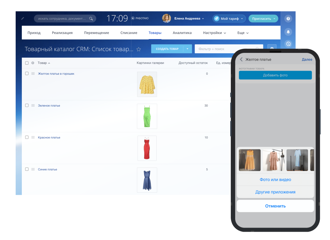Фотографируйте новый товар на телефон и сразу добавляйте фото в каталог с помощью мобильного приложения Битрикс24.