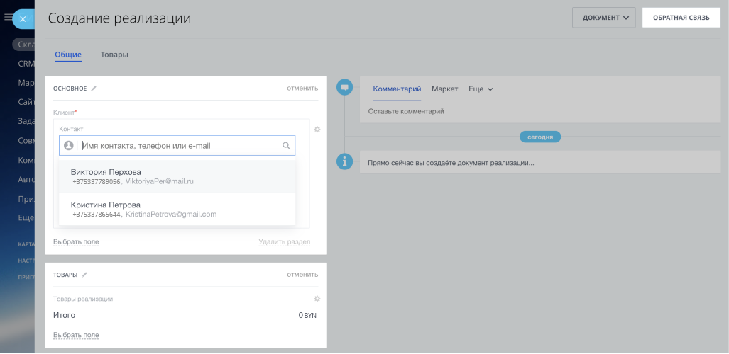 Экономьте время при заполнении документов. Введите данные клиента один раз и сохраните контакт в базу. В следующий раз данные клиента заполнятся автоматически.